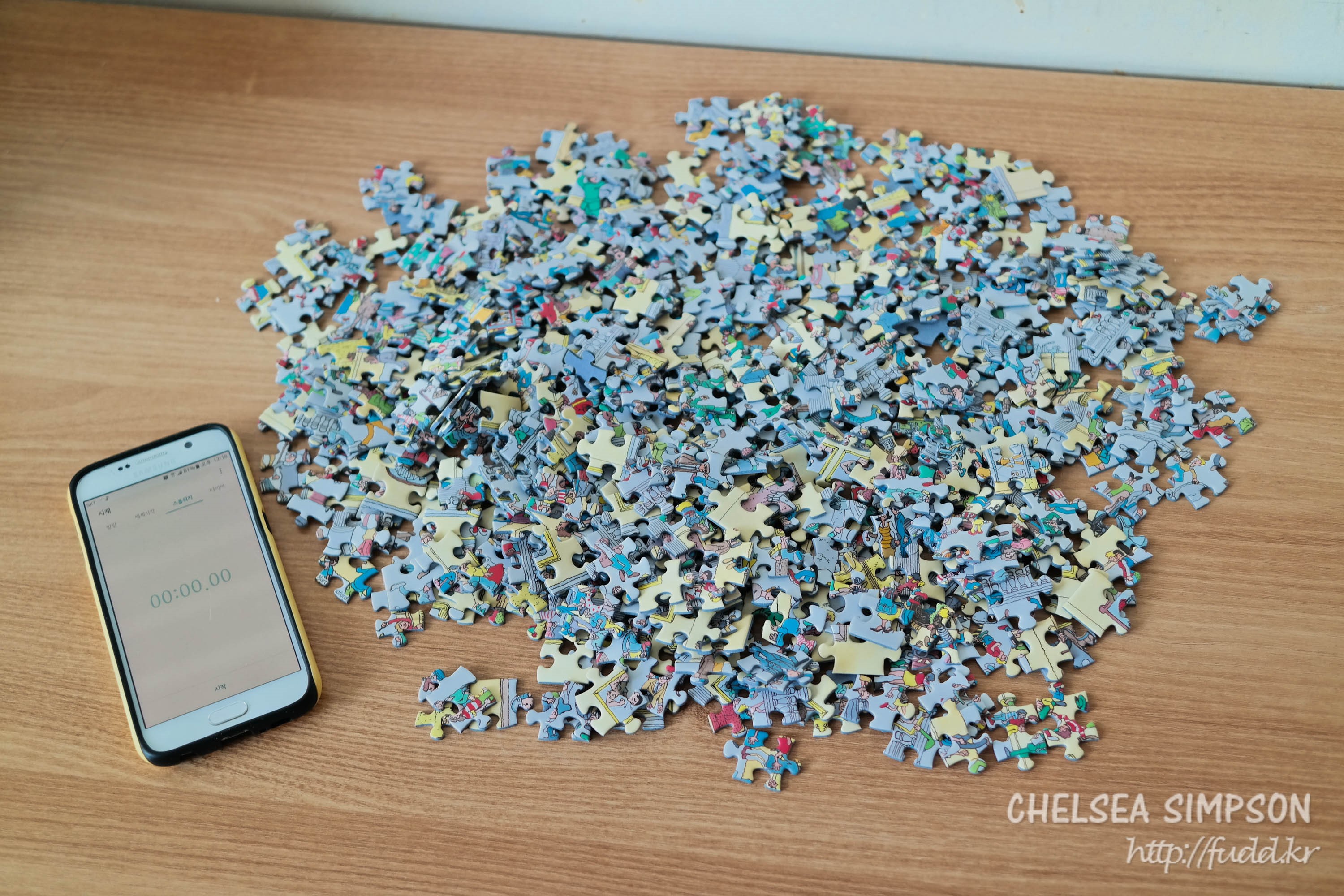모든 조각을 위로 가도록 정리한 뒤 스톱워치와 함께 시작!