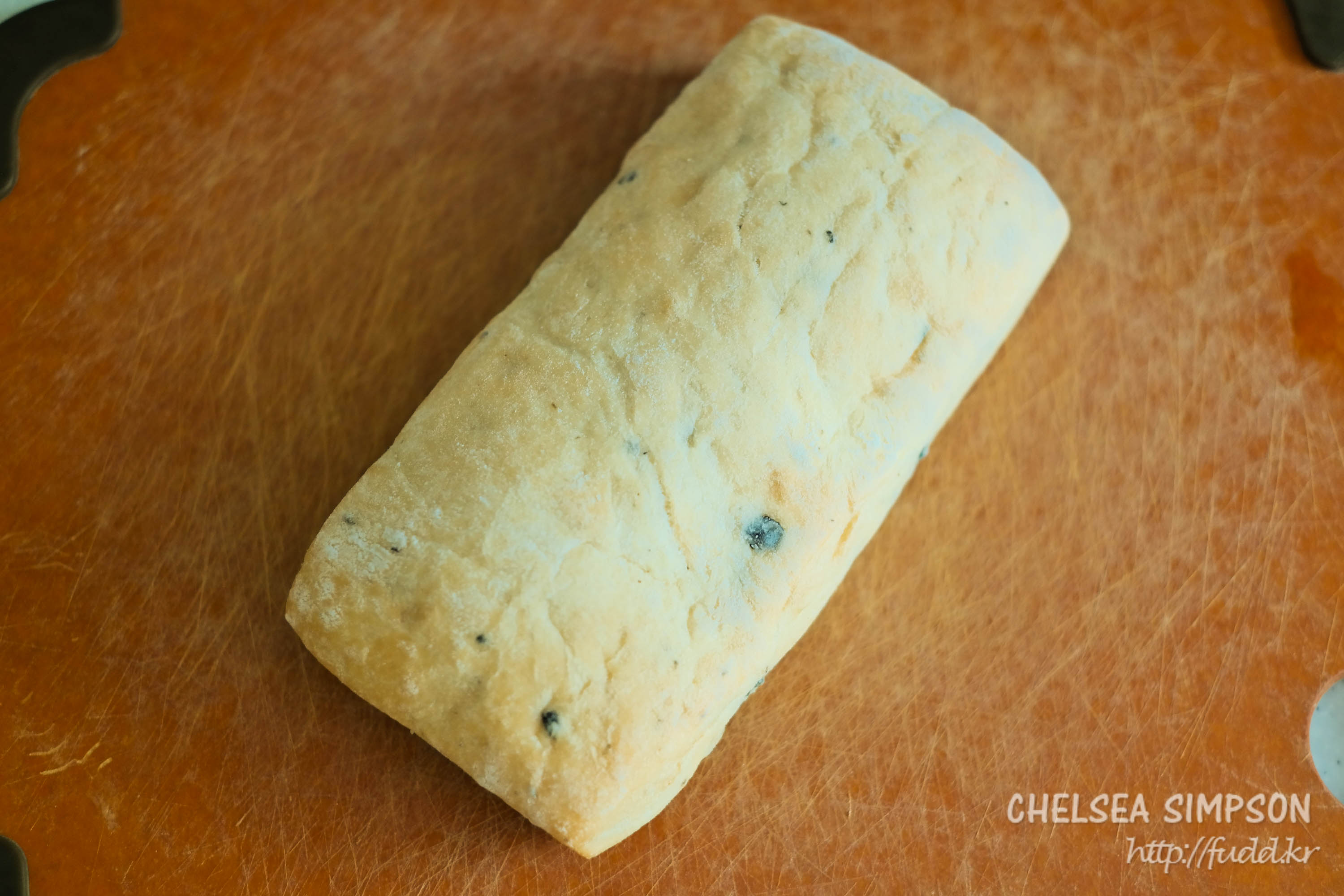 기존 치아바타와 모양새는 같지만 블랙올리브가 군데군데 박혀있는 게 보인다.