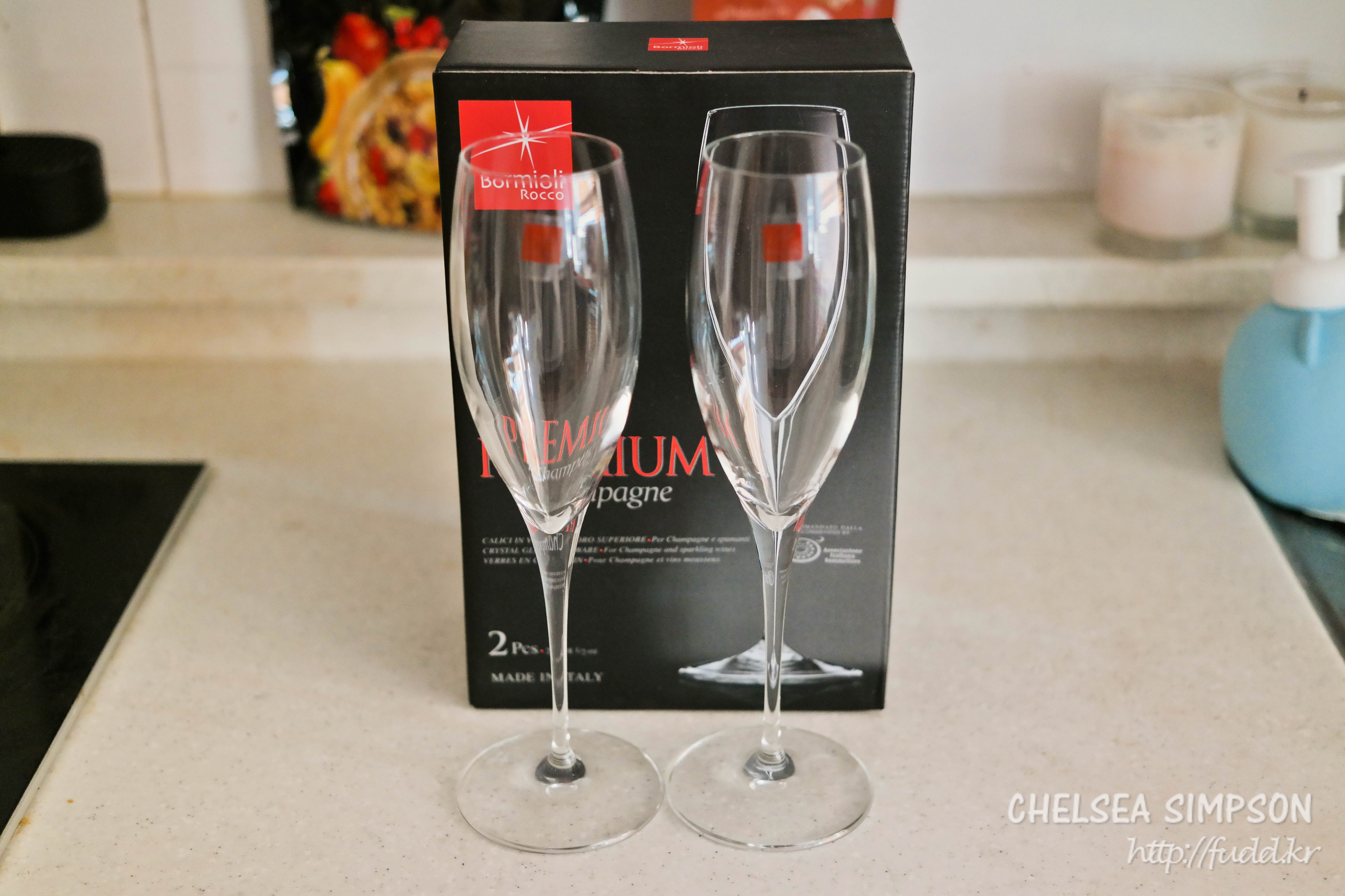 예전에 쓰던 샴페인잔이 깨져서 새로 선물 받은 건데 새 잔이 더 마음에 든다.