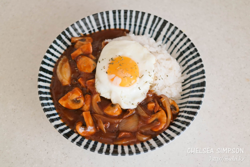 초콜릿과 양송이가 들어간 게 특징이라서 '초코송이 하이라이스'라고 명명해보았다.