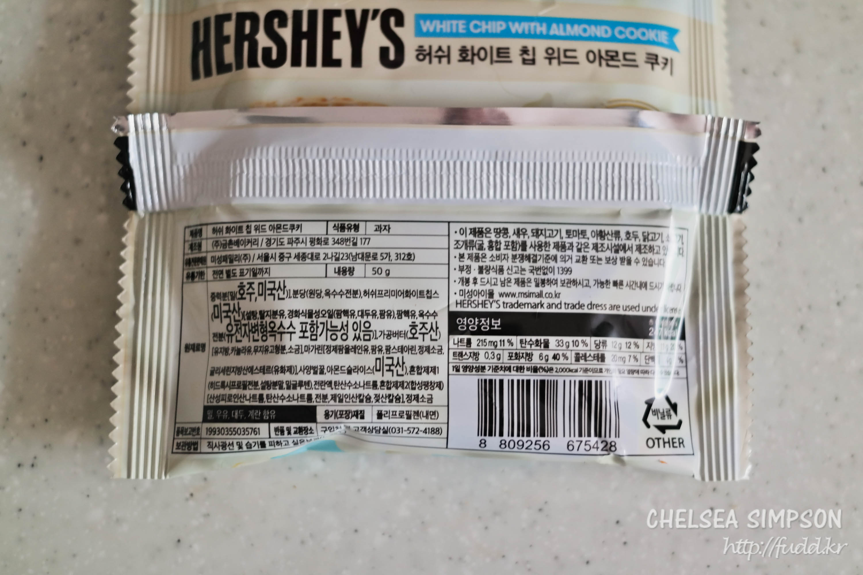 허쉬 싱글 쿠키를 3종류 샀다. 화이트 칩 위드 아몬드 쿠키는 이전과 겹치지만 나머지는 다른 종류.