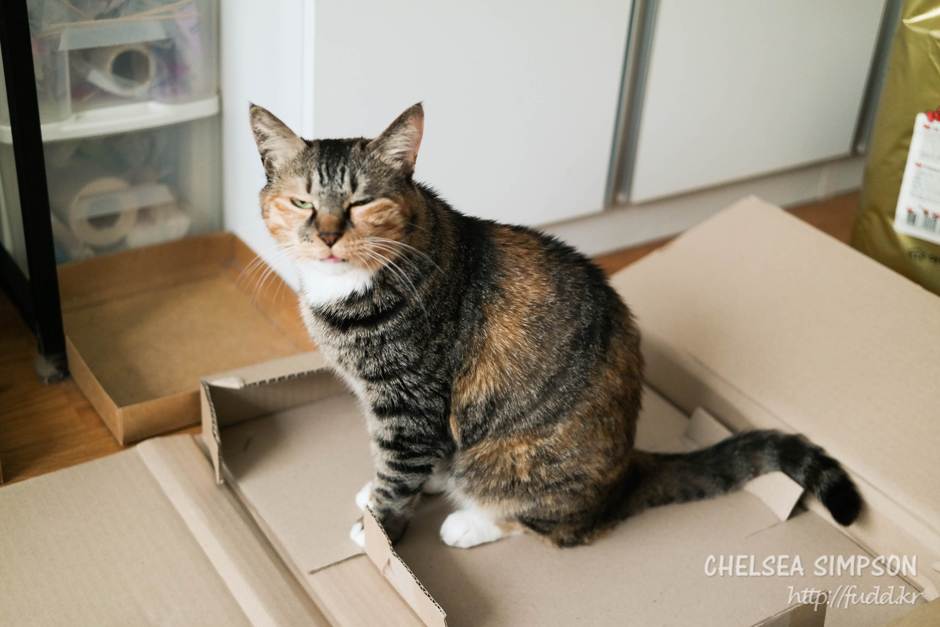 택배상자 위에 오랜만에 올라간 후추.