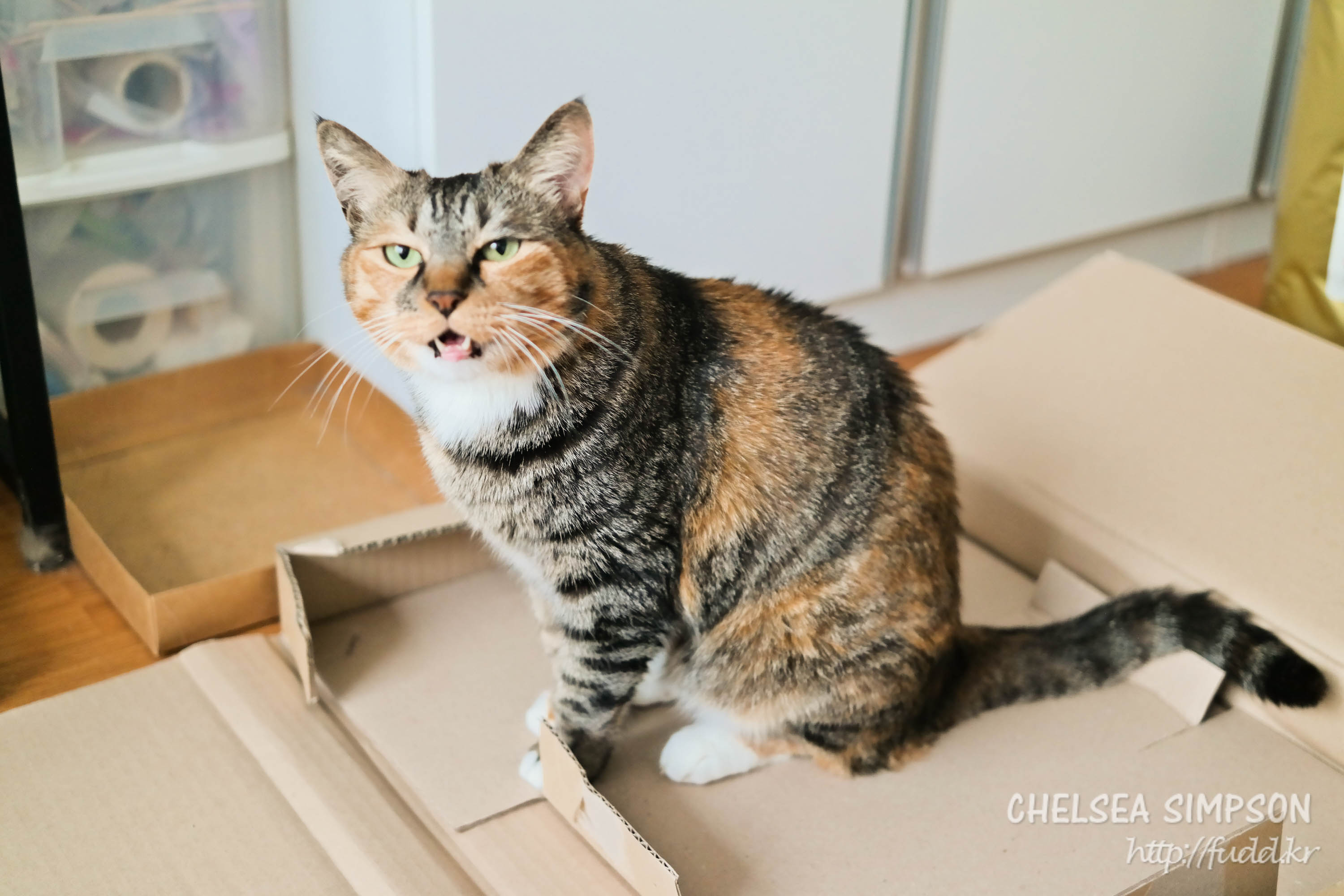 택배상자 위에 오랜만에 올라간 후추.