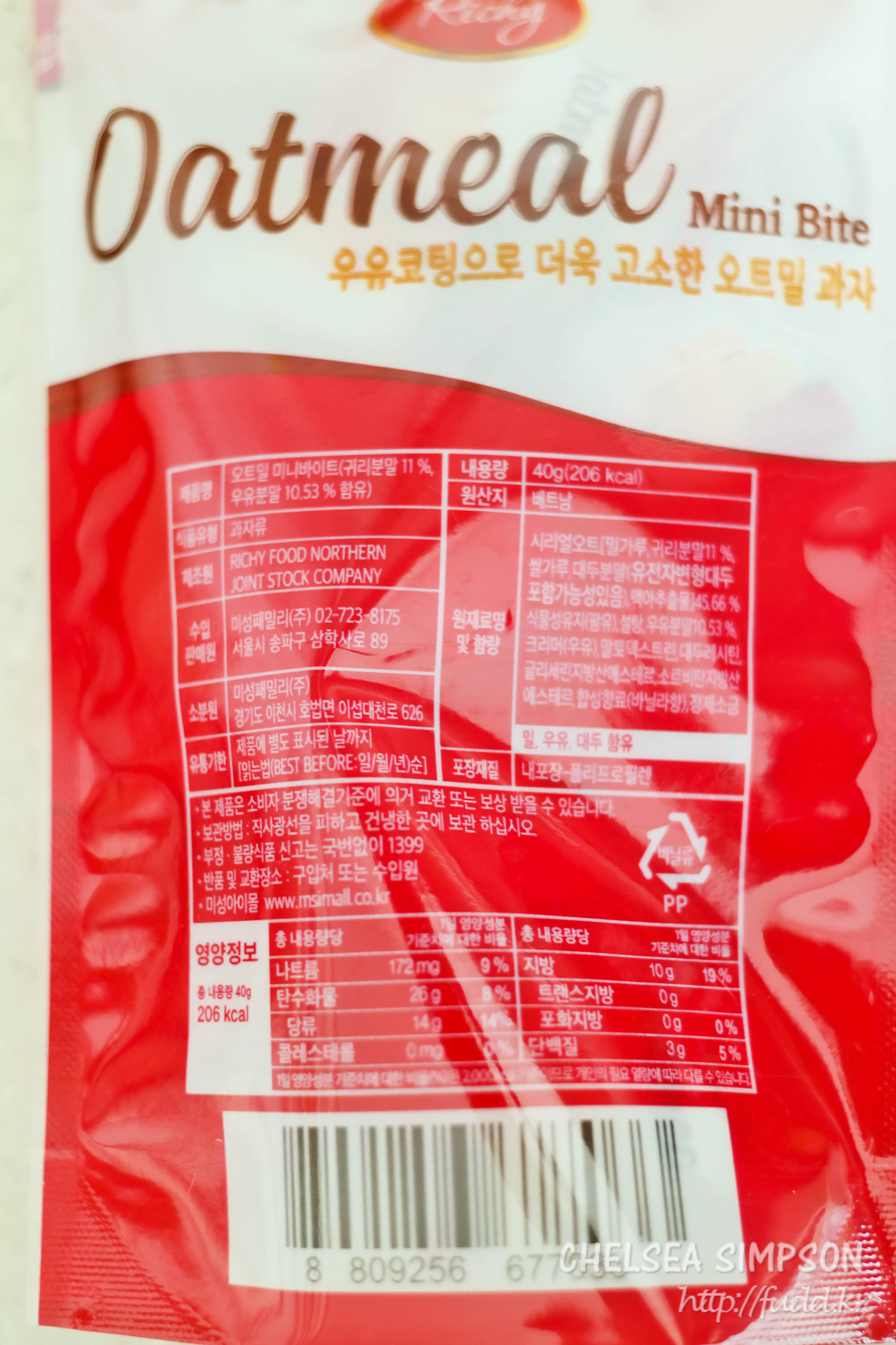 다만 원래 오트밀 미니바이트는 16개가 평균이라고 하니 내가 운이 좋게도 하나 더 들어있는 걸 산 모양이다.