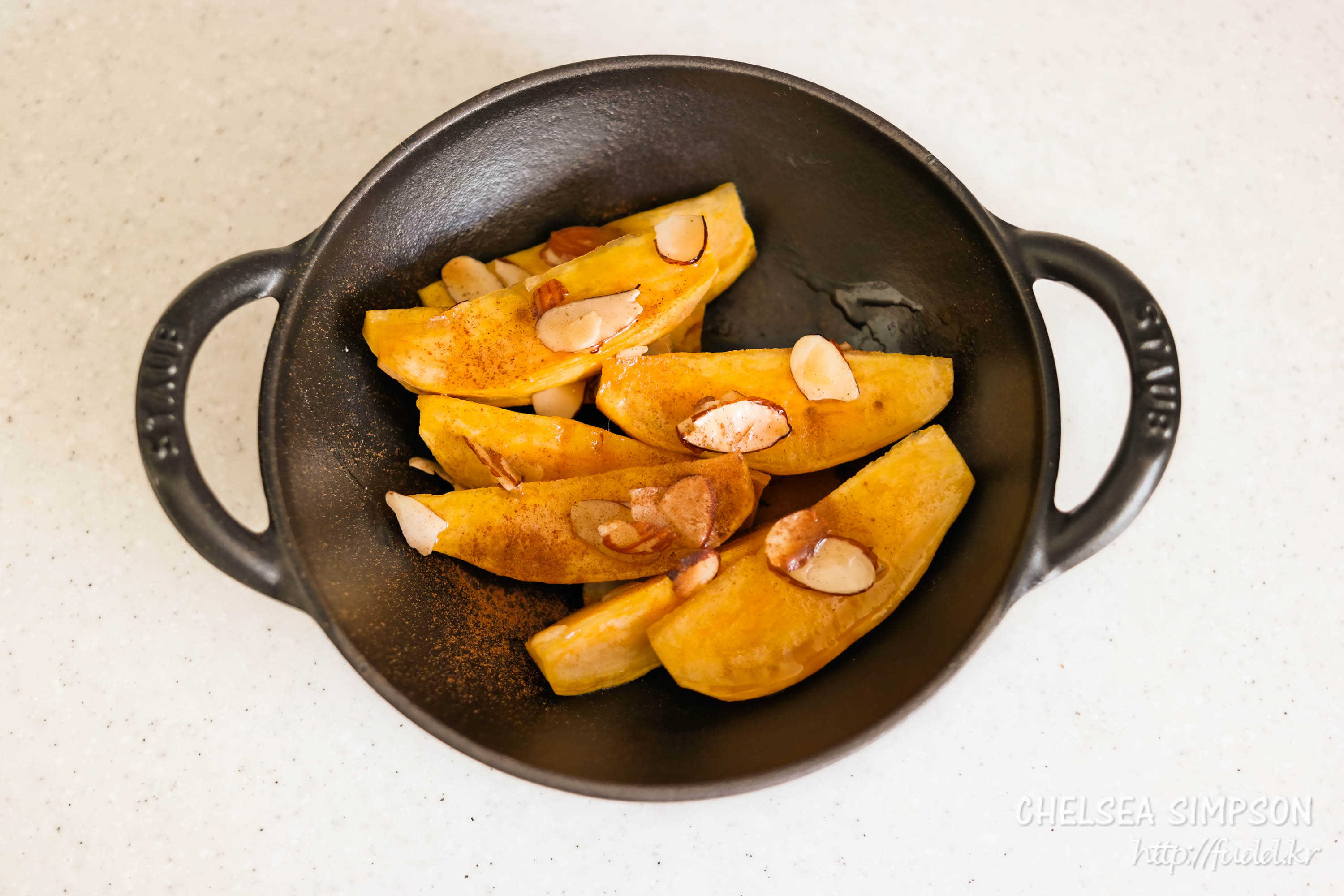 예전에 존쿡 쿠킹클래스에서 배웠던 메이플 단호박을 고구마 버전으로 만들어보았었다.