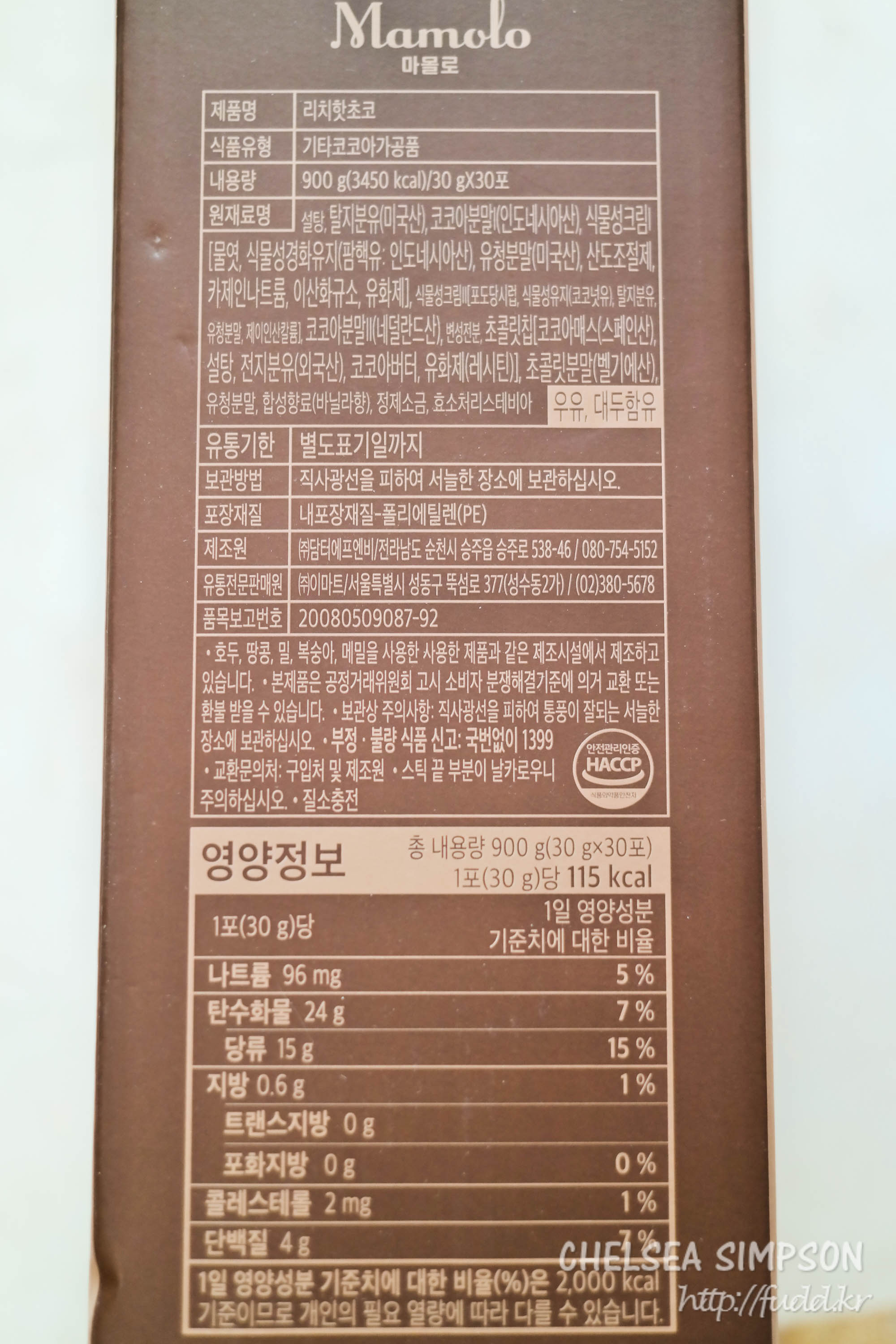 [이마트]피코크 마몰로 리치핫초코(30gx30포) 후기, 핫초코/코코아 믹스 추천