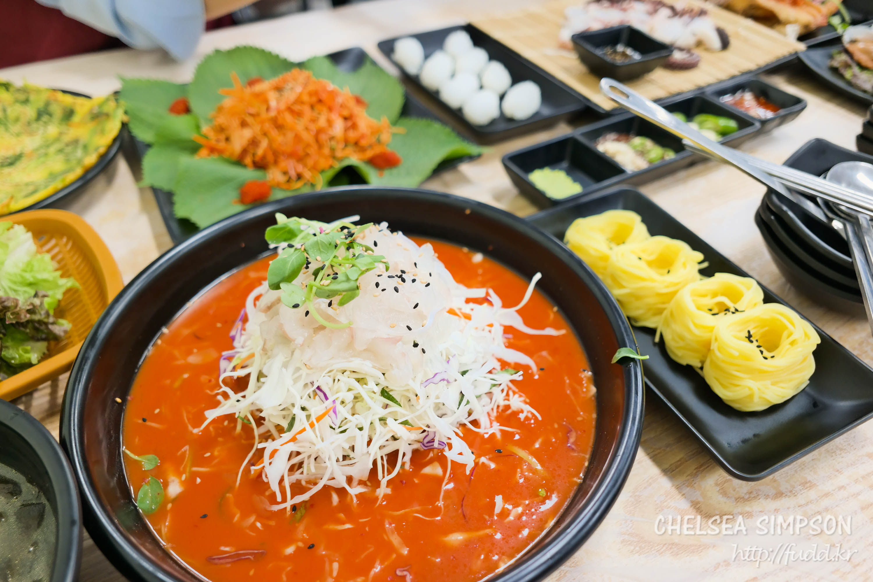 쫄깃한 문어, 통통한 꼬막, 새콤달콤매콤한 물회에 소면, 담백한 순두부까지 다양하게 골라먹는 재미가 있다.