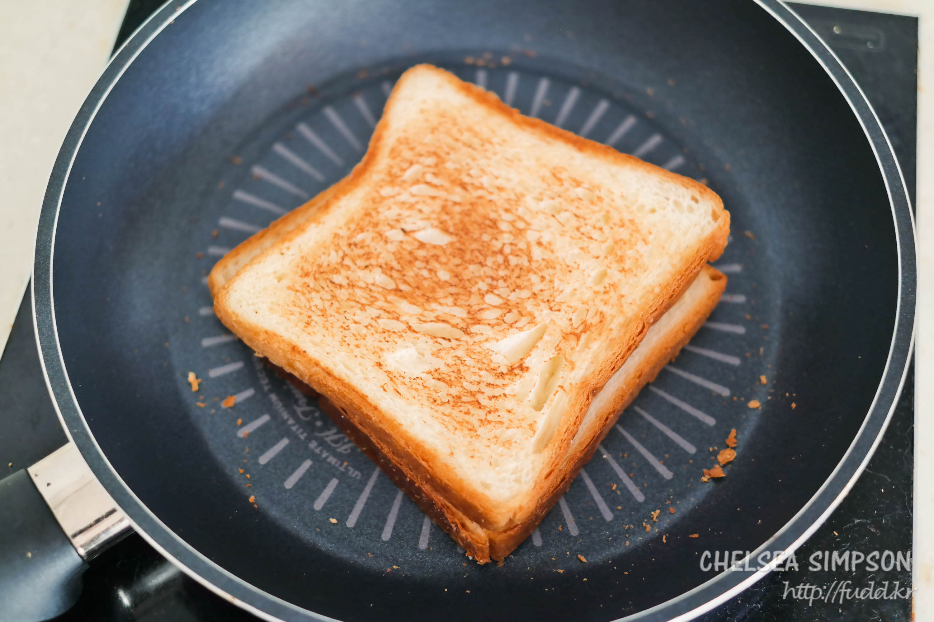 식빵을 앞뒤로 노릇하게 굽는다.