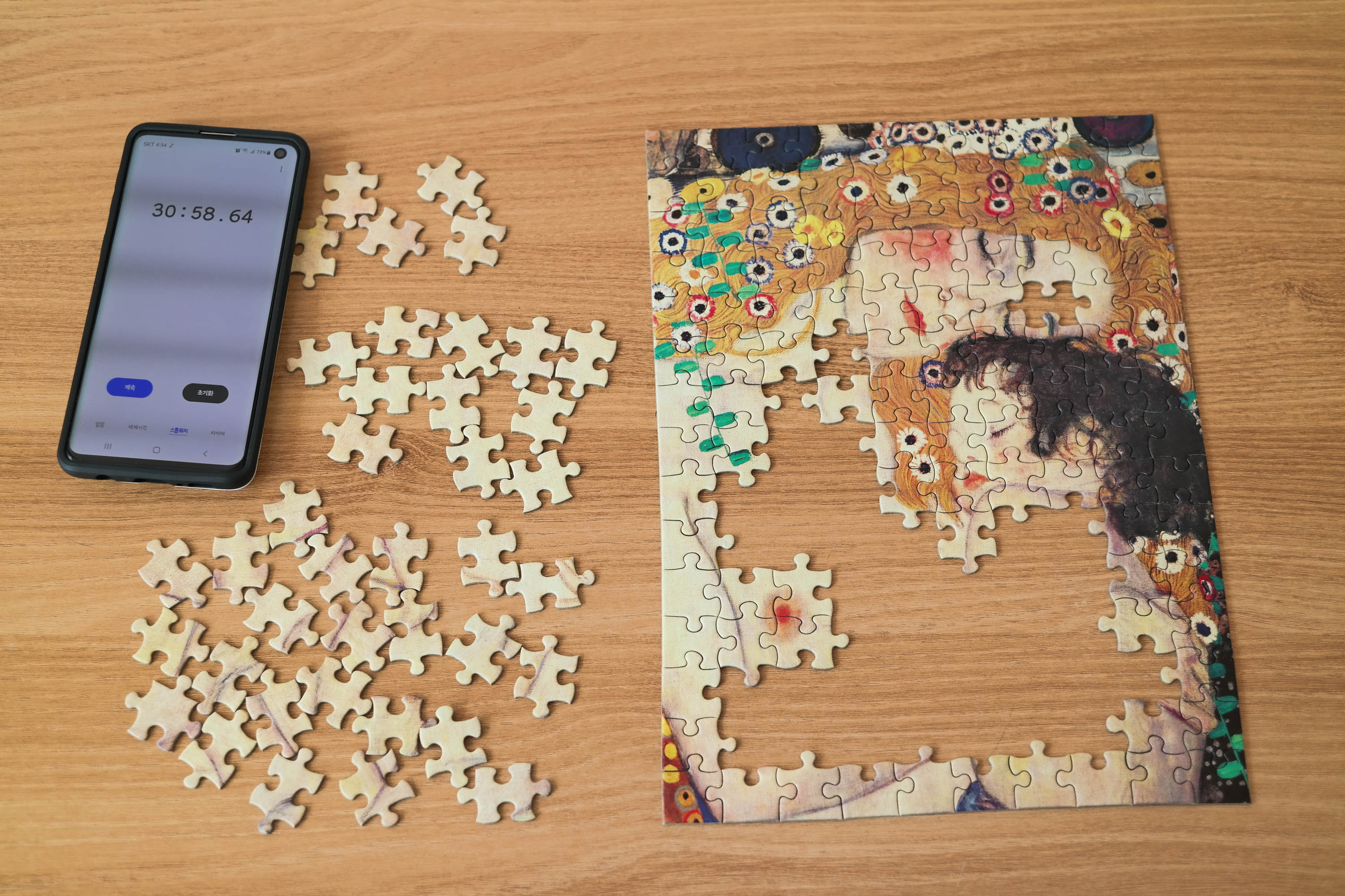 퍼즐조각을 전부 위로 오게 뒤집어놓고 스톱워치와 함께 시작!