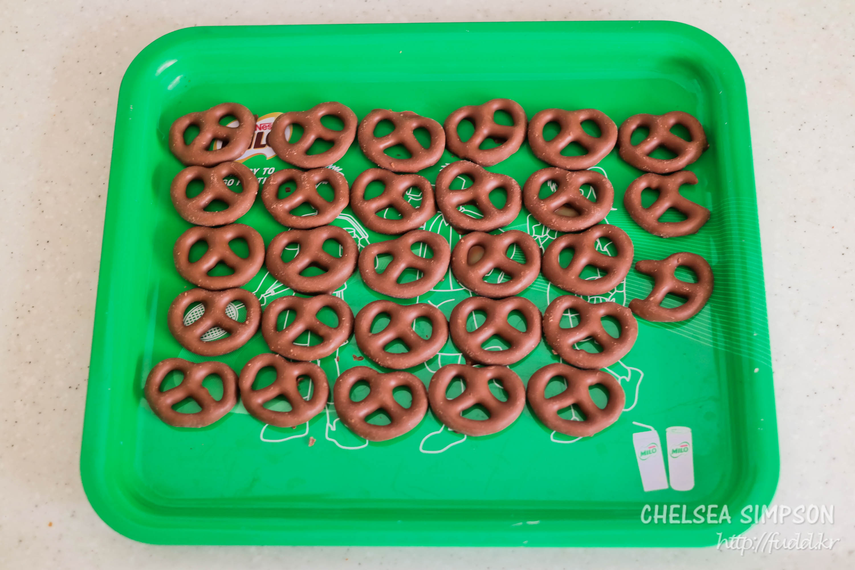 미니프레즐 솔트에 준초콜릿을 입혔다고 한다.