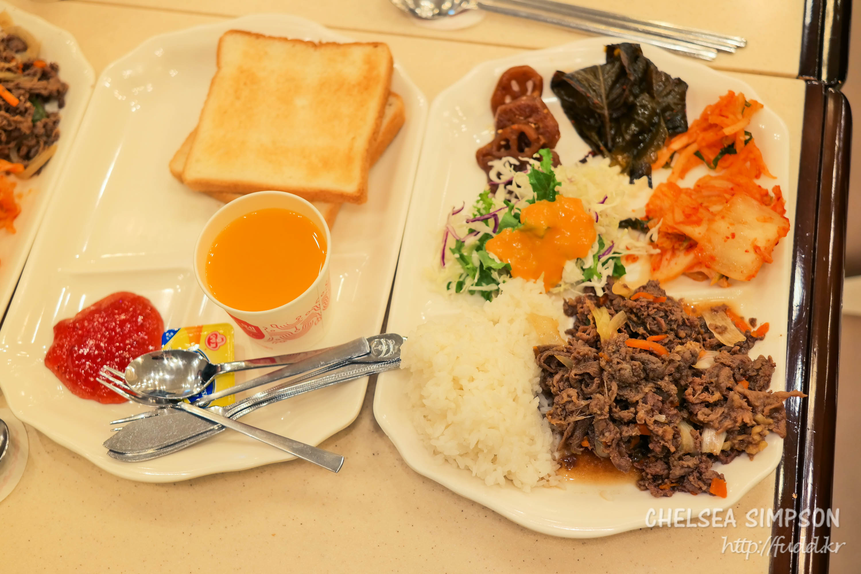 이 날은 콩나물국, 고사리나물, 김자반, 김치, 코다리조림, 감자조림이 나왔다.