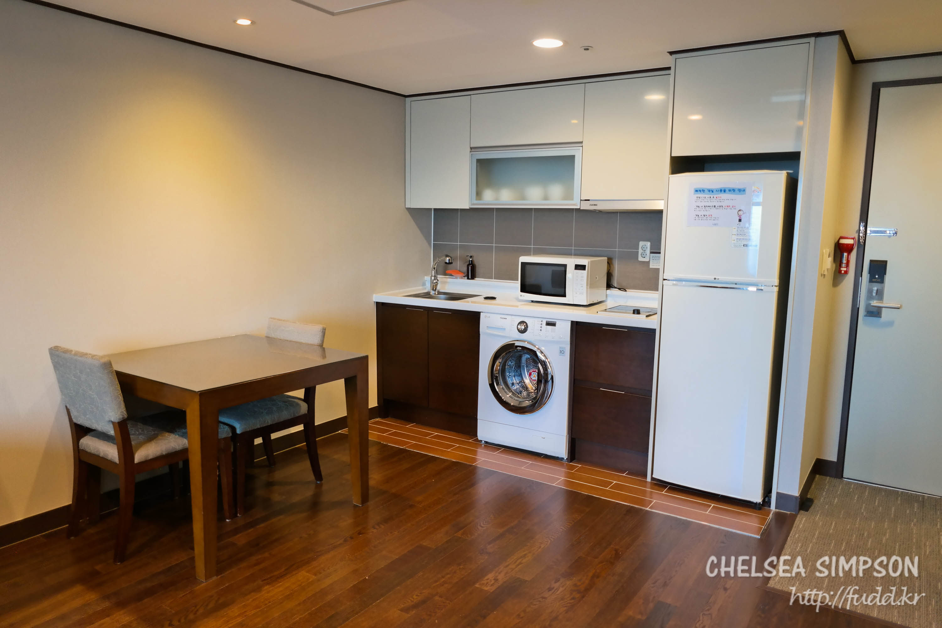레지던스형 객실이어서 침실과 거실이 분리돼있고 취사가 가능하다는 것이 특징이다.