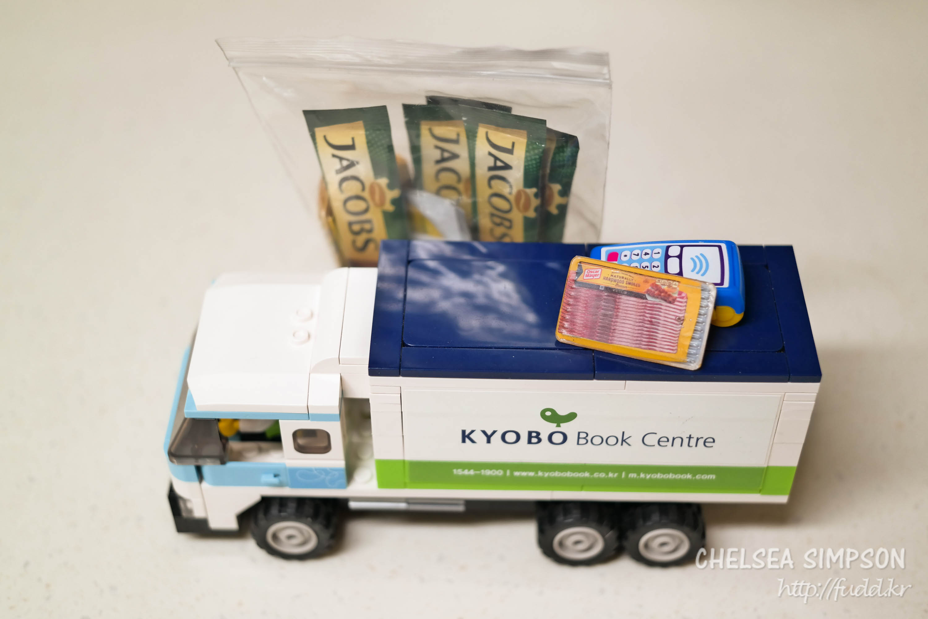 집에 있던 교보문고 배송 트럭과 함께 찍어봤다.