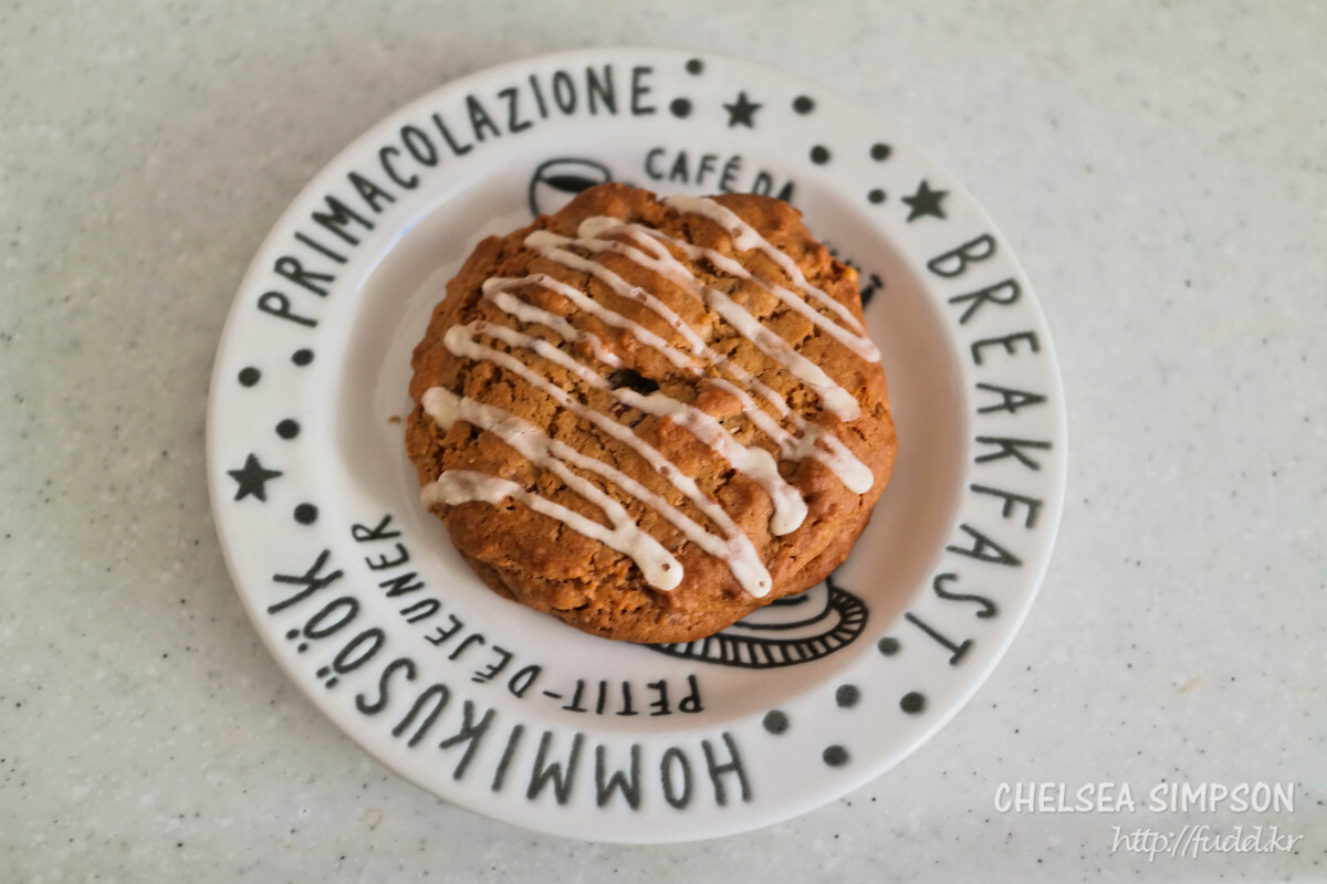 메이플 피칸 쿠키 쿠키 자체는 촉촉하고 많이 달지 않은데 메이플향이 향긋하고 위에 뿌린 프로스팅이 살짝 달콤하다.