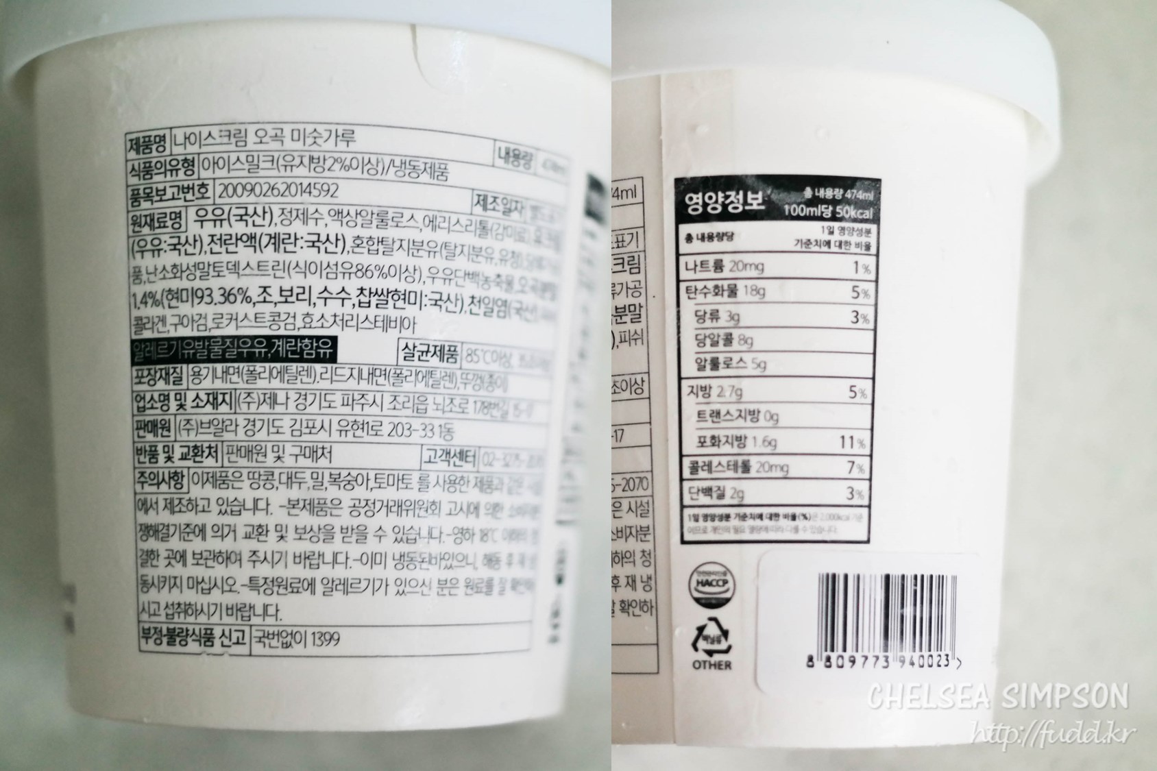 브알라 나이스크림 오곡 미숫가루(474ml, 마트 가격 9,600원)