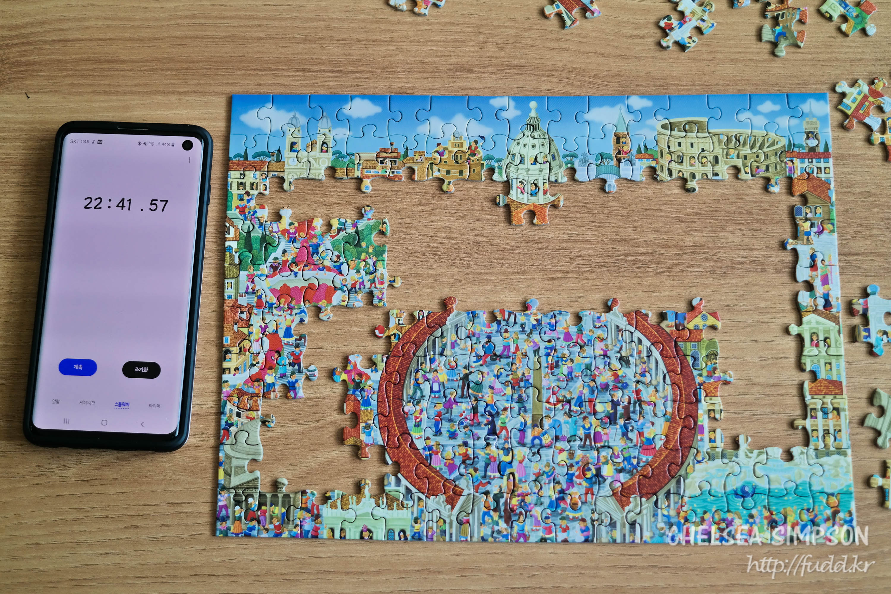 퍼즐조각을 전부 위로 오게 뒤집어놓고 스톱워치와 함께 시작!