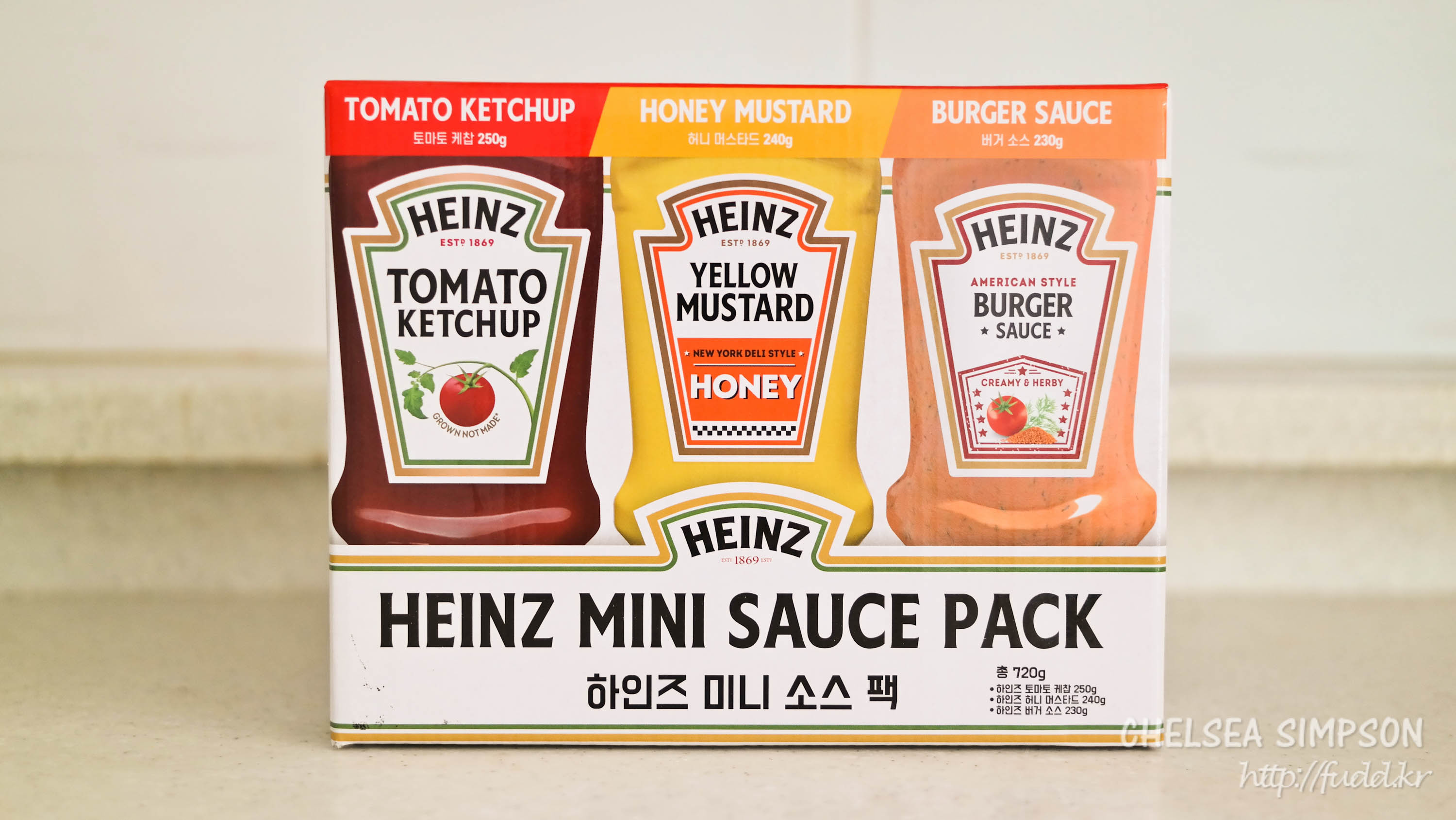 하인즈 미니 소스 팩(250g+240g+230g,총 중량 720g, 마트 가격 4,980원)