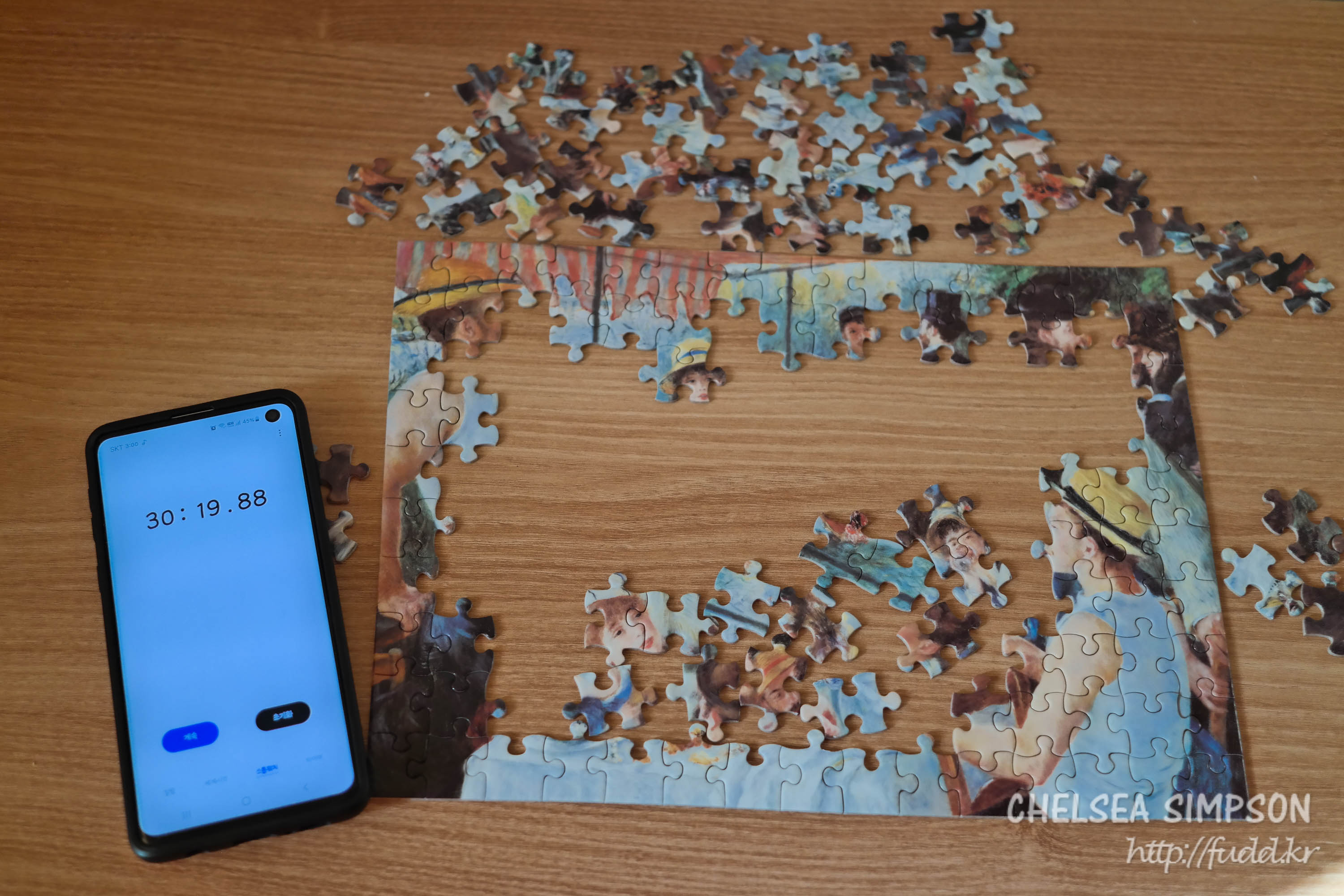 일반 150조각 퍼즐이라면 완성되어갈 시간인데 아직 절반밖에 하지 못했다.