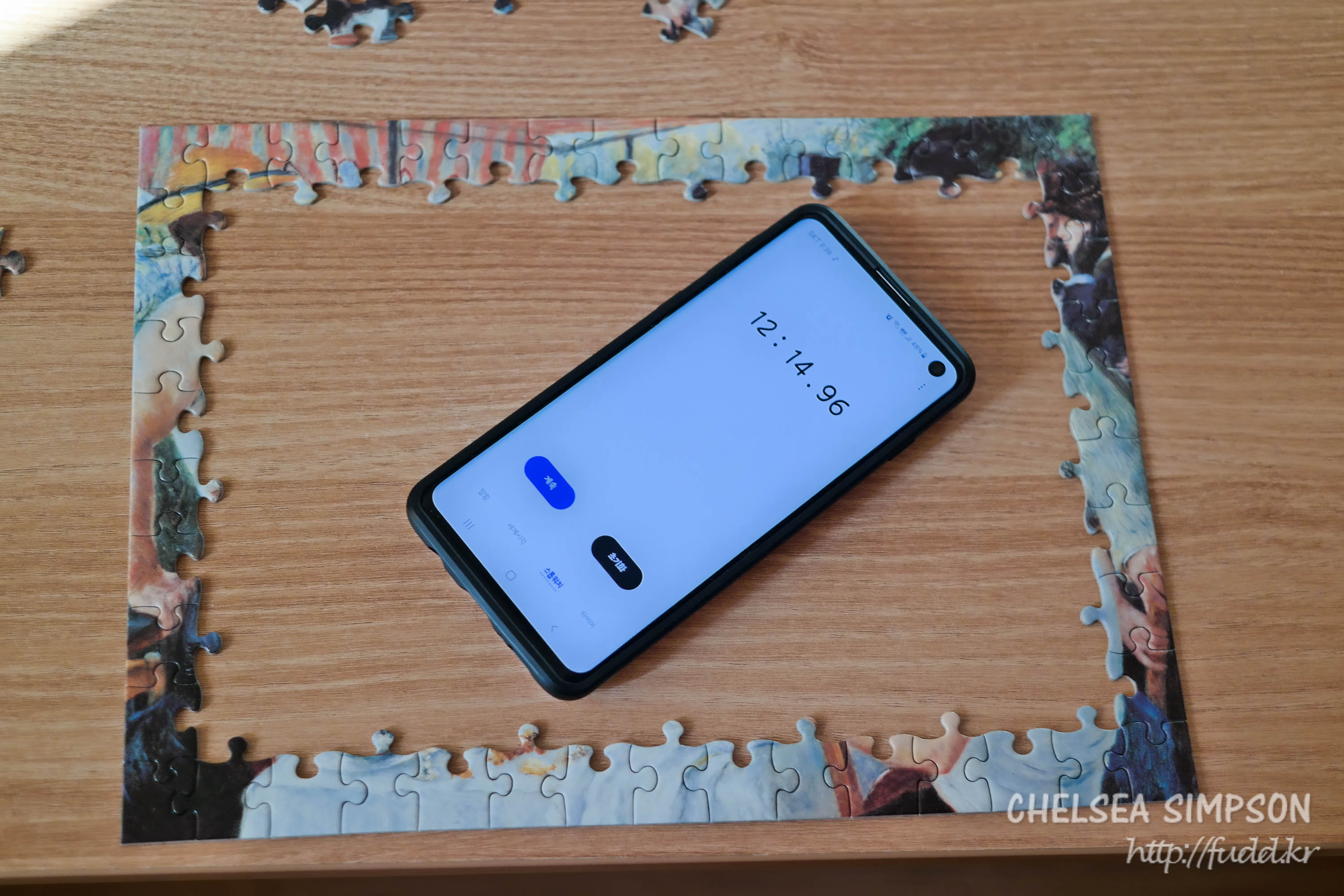 퍼즐조각을 전부 위로 오게 뒤집어놓고 스톱워치와 함께 시작!