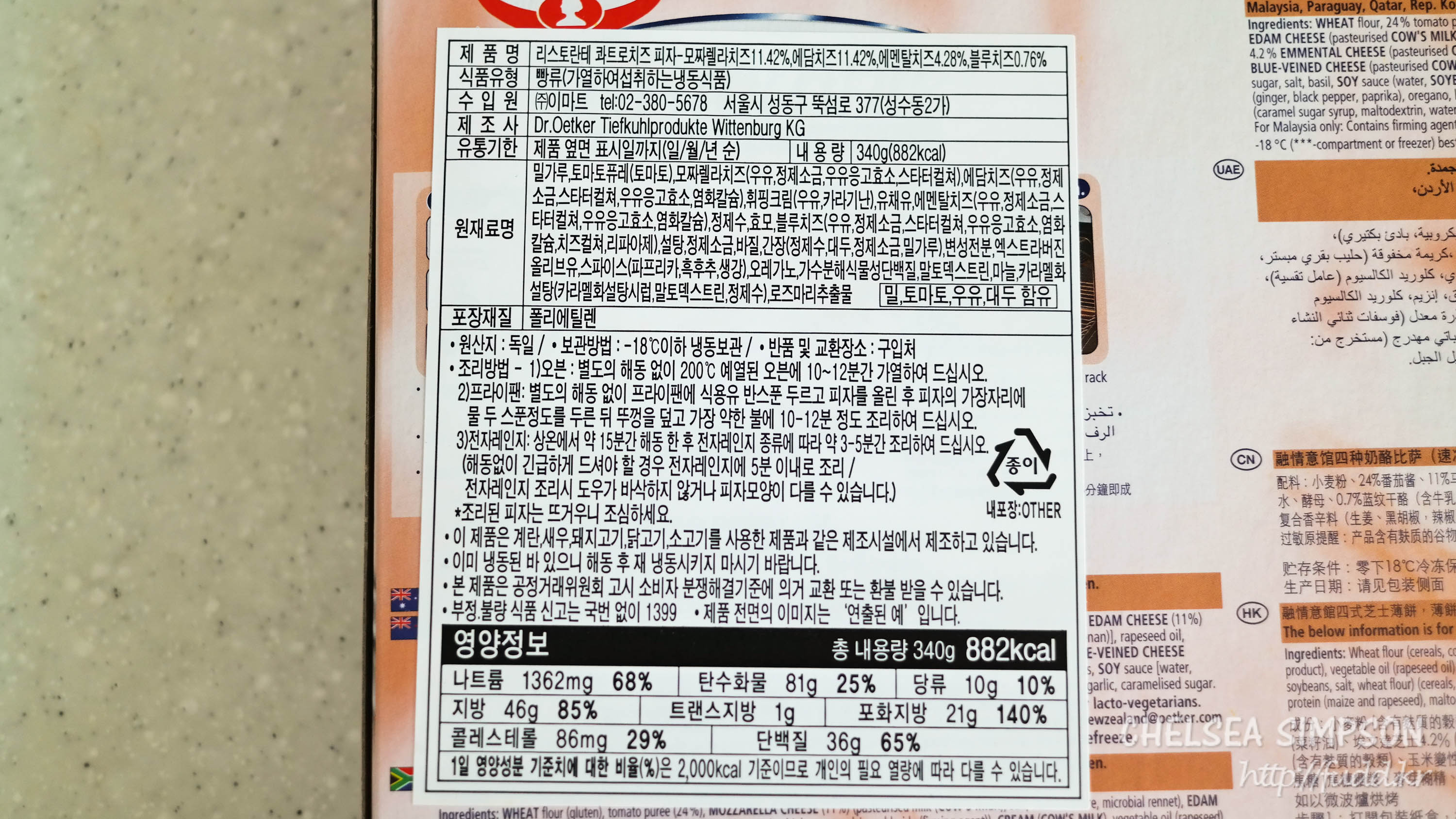 닥터오트커 리스토란테 콰트로 포르마지 피자(340g, 마트 가격 4,980원)