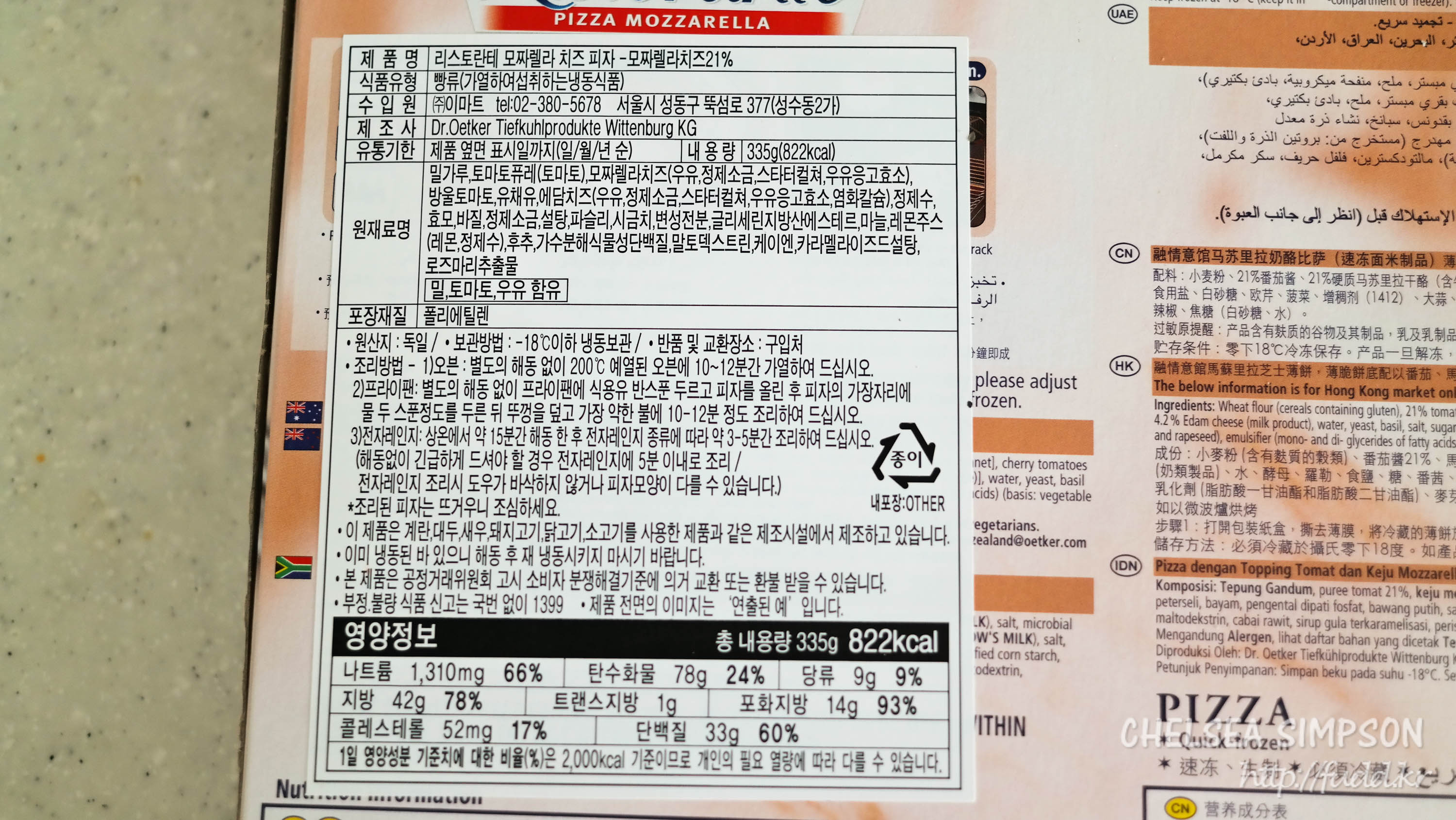 독일에서 수입된 냉동피자 제품이다.