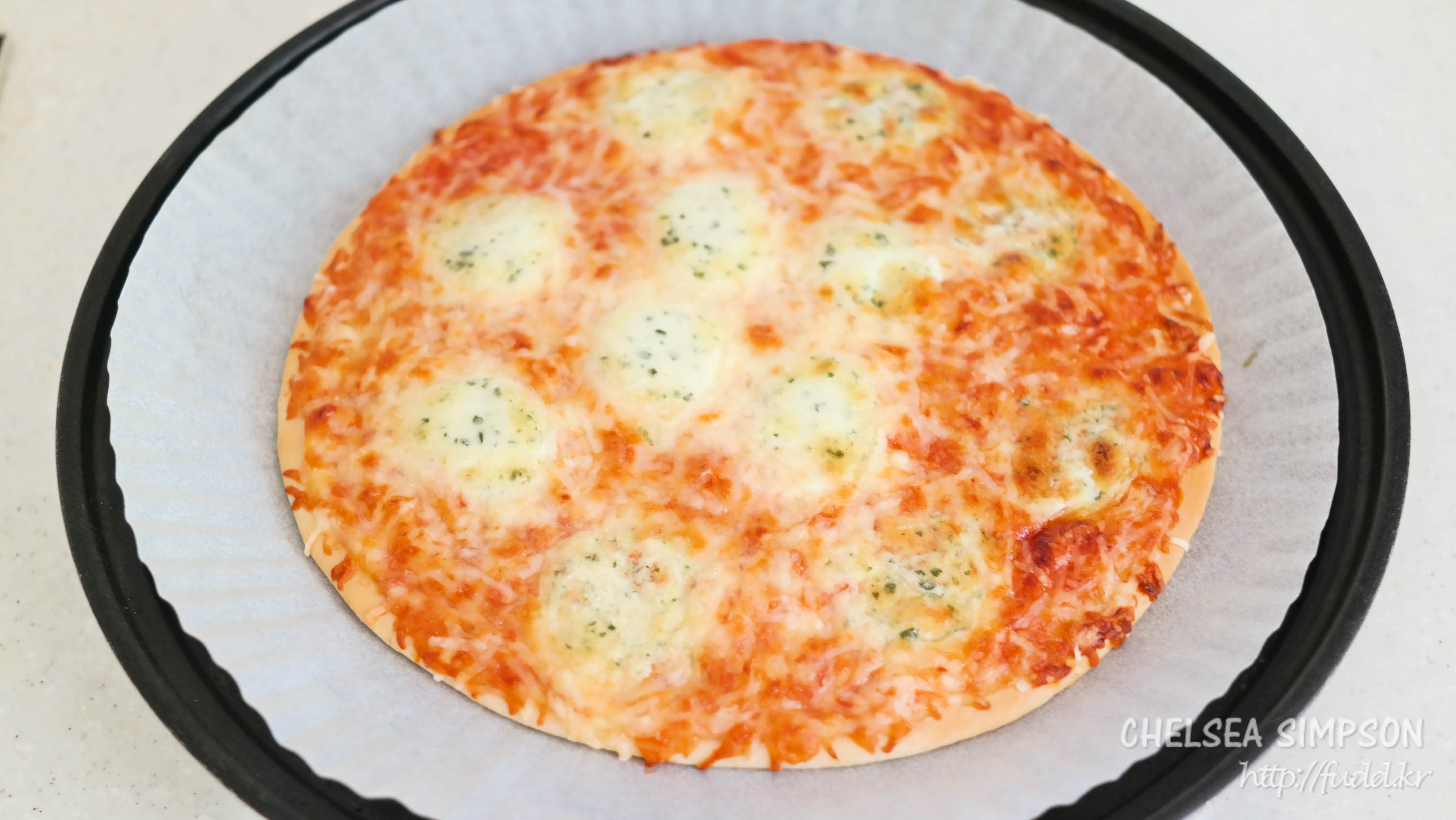 노릇한 피자를 좋아한다면 모짜렐라 피자는 200℃-15분, 콰트로 포르마지는 200℃-12분 가열.