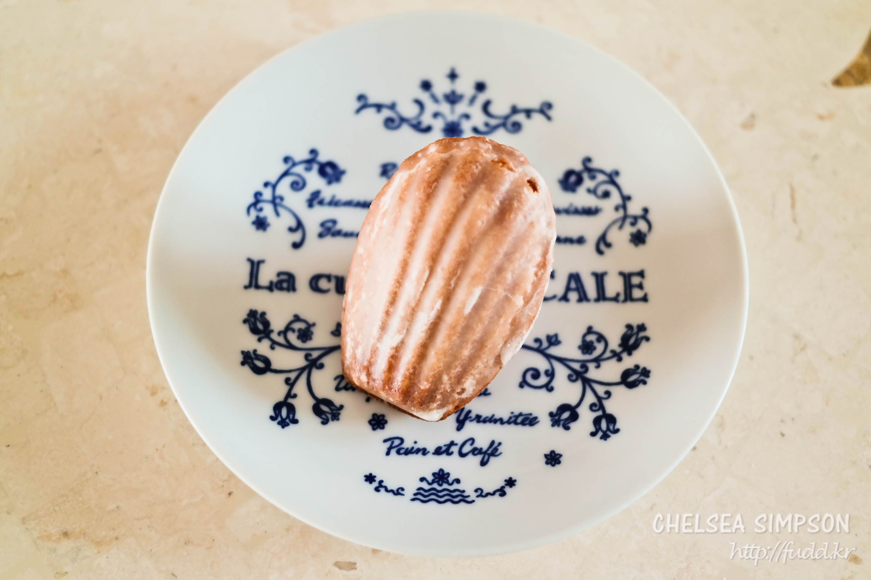 상큼한 레몬 글라세를 입힌 마들렌이다.