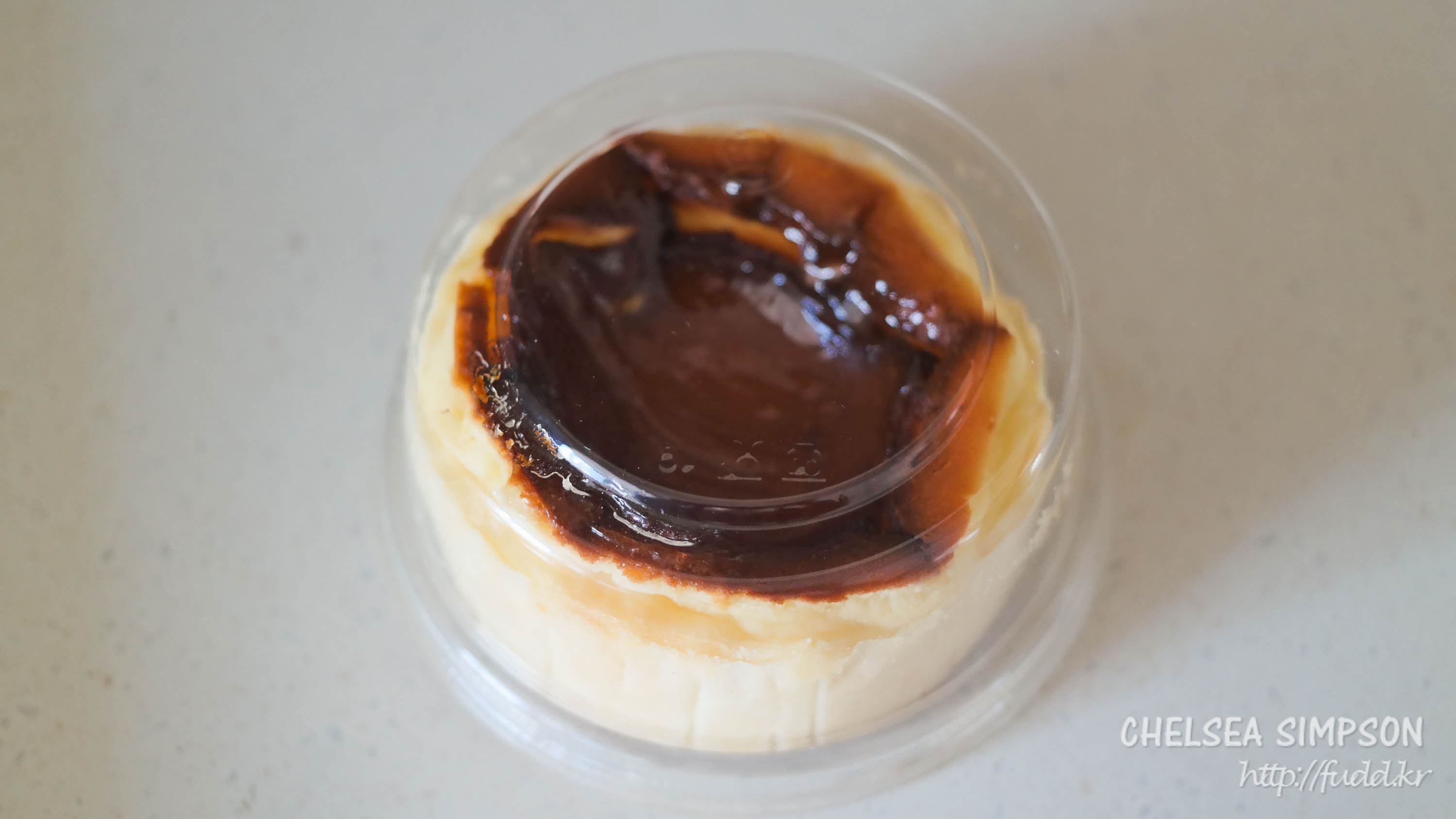 번트 치즈 케이크는 이렇게 플라스틱 용기 안에 들어있다.