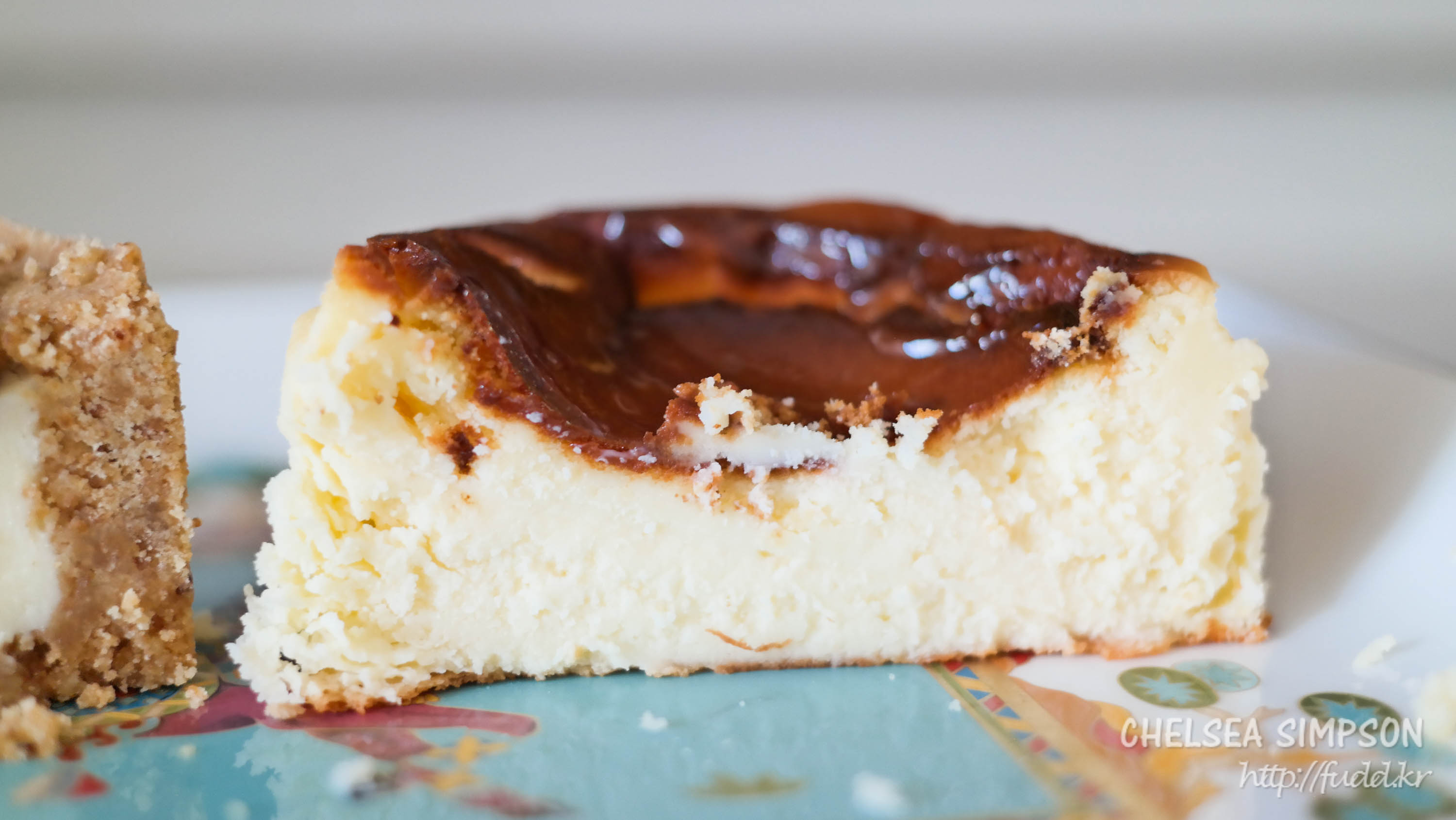번트 치즈 케이크는 크림치즈가 듬뿍 들어간 케이크를 높은 온도로 짧은 시간 구워낸 진한 맛의 치즈 케이크라고 한다.