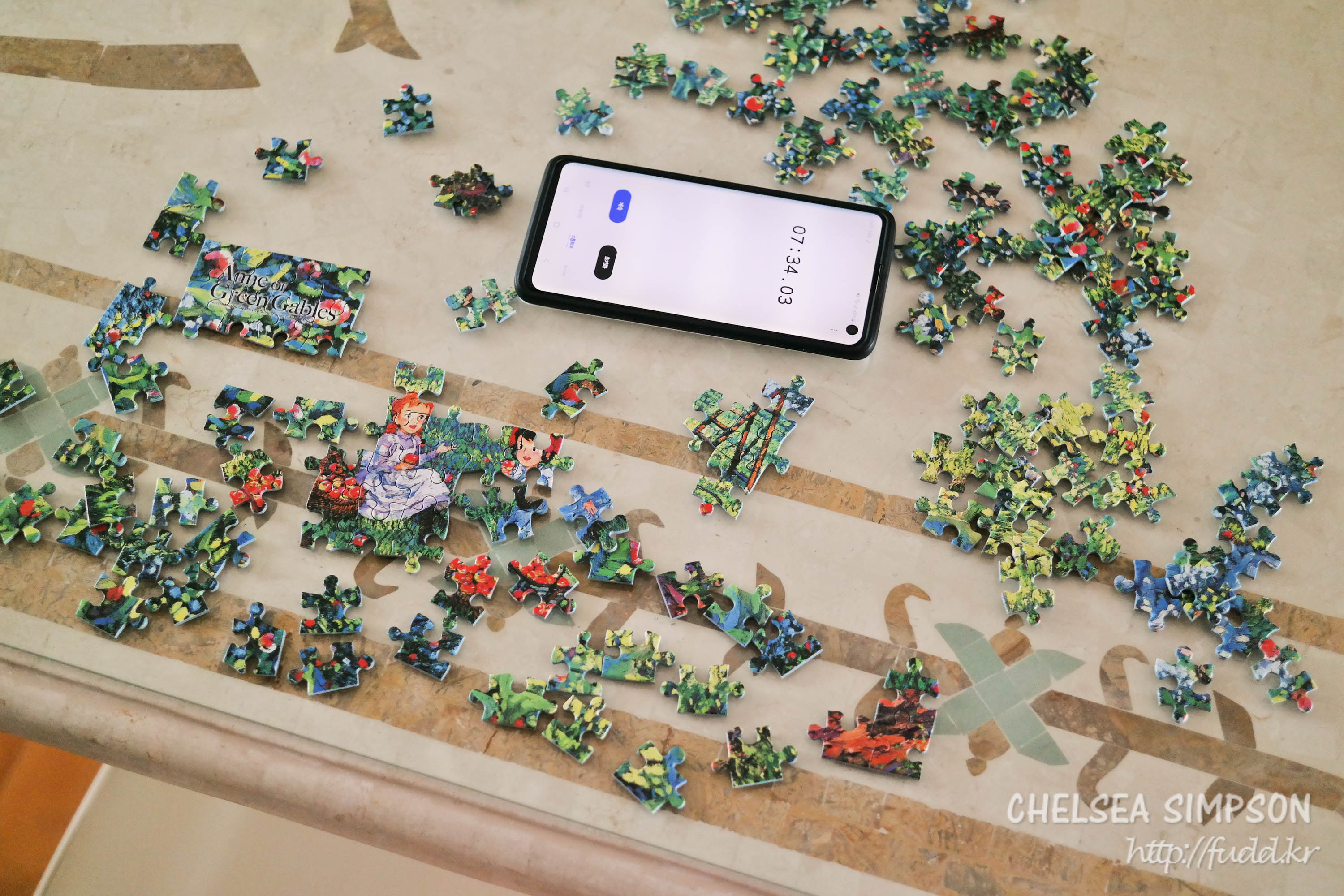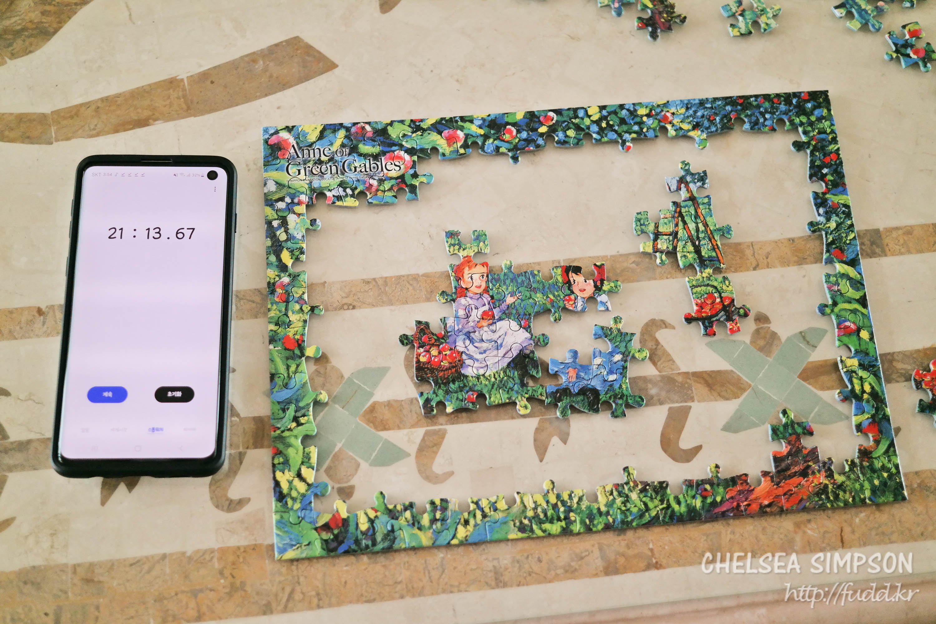 퍼즐조각을 전부 위로 오게 뒤집어놓고 스톱워치와 함께 시작!