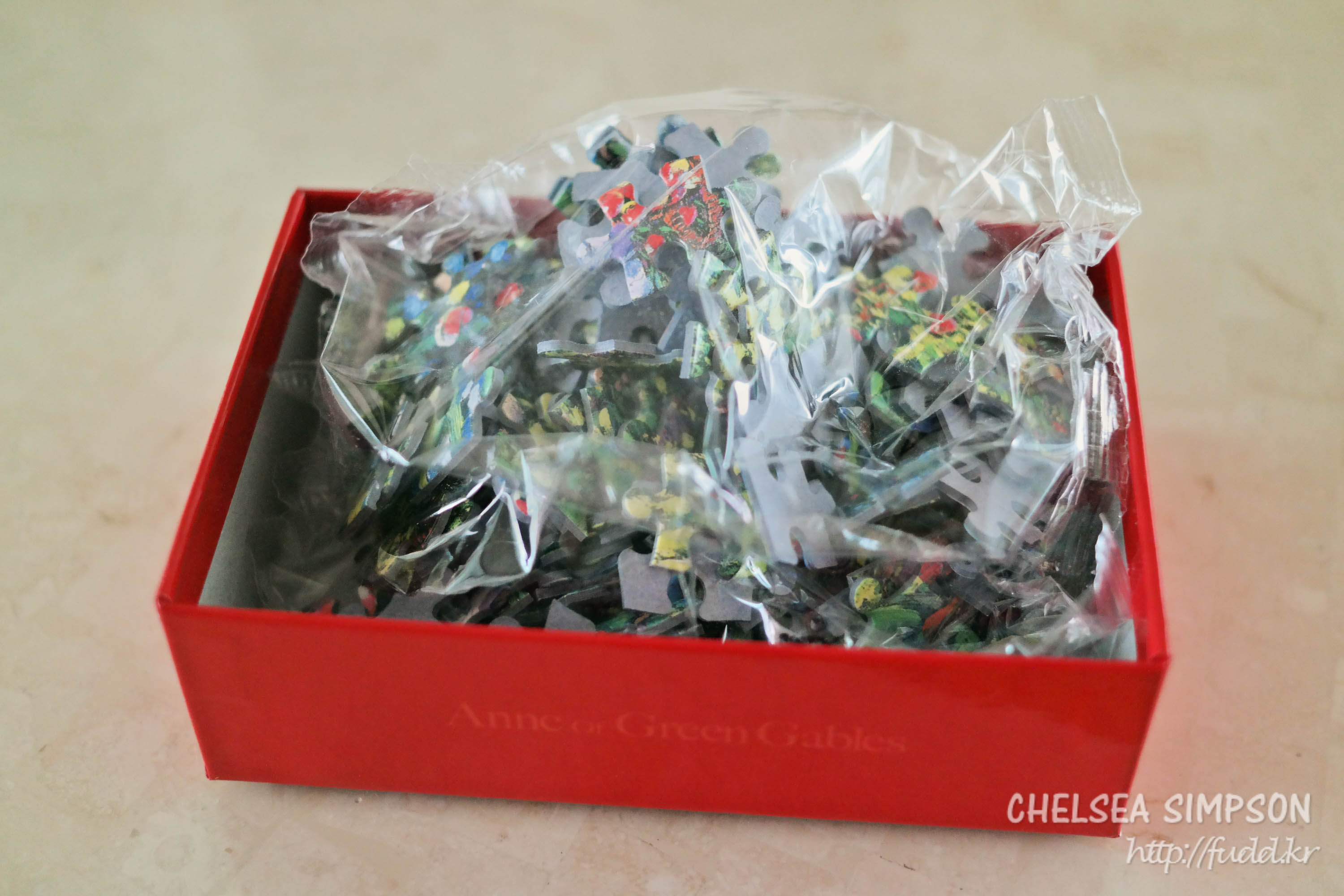 저렴한 직소퍼즐이기 때문에 따로 밑그림 같은 건 없고 얇은 비닐봉지 안에 퍼즐만 들어있다.
