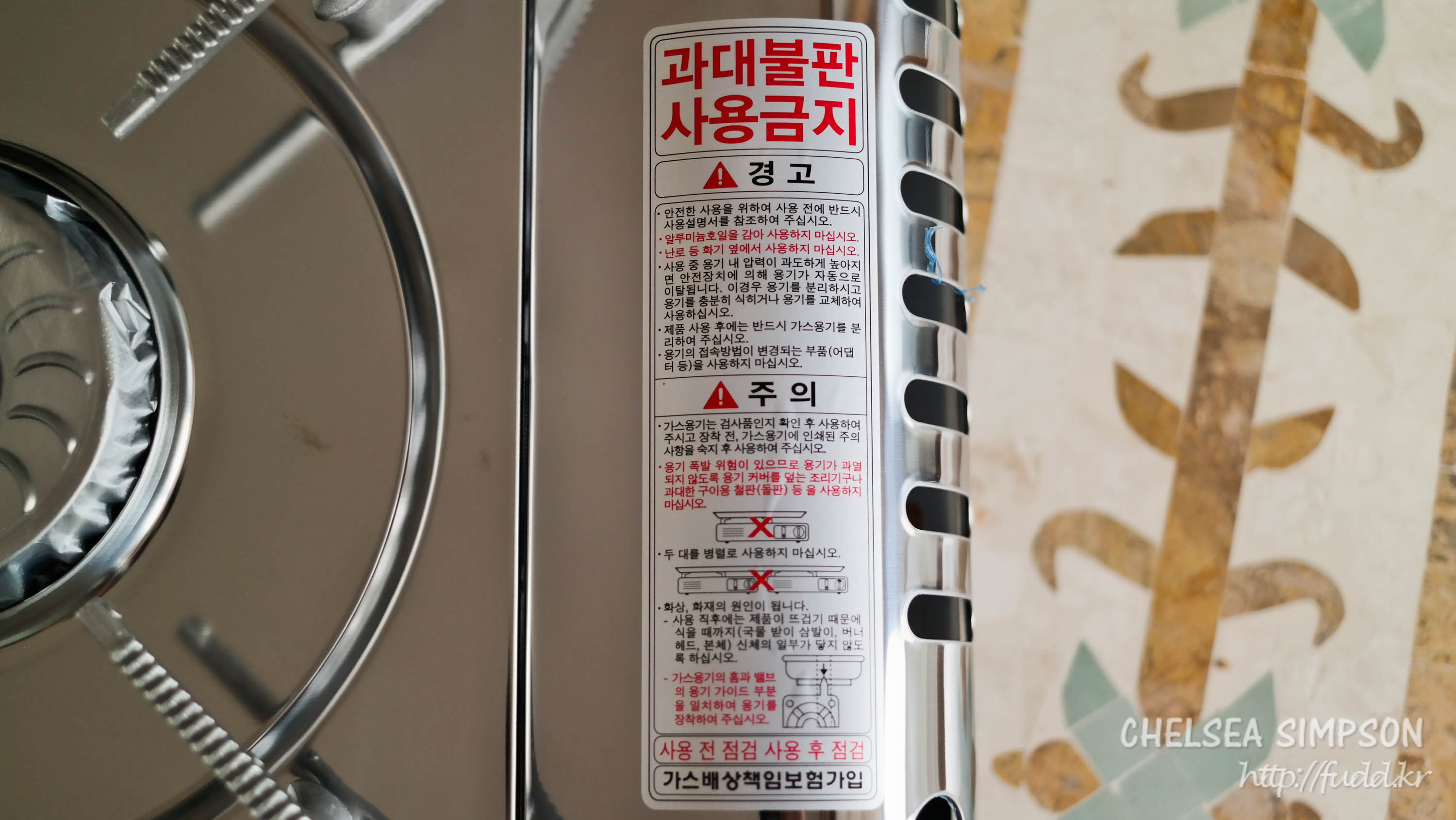 가스 용기 부분까지 덮을 정도로 큰 과대 불판 사용시 용기가 과열되어 폭발할 수 있으니 주의해야 한다.
