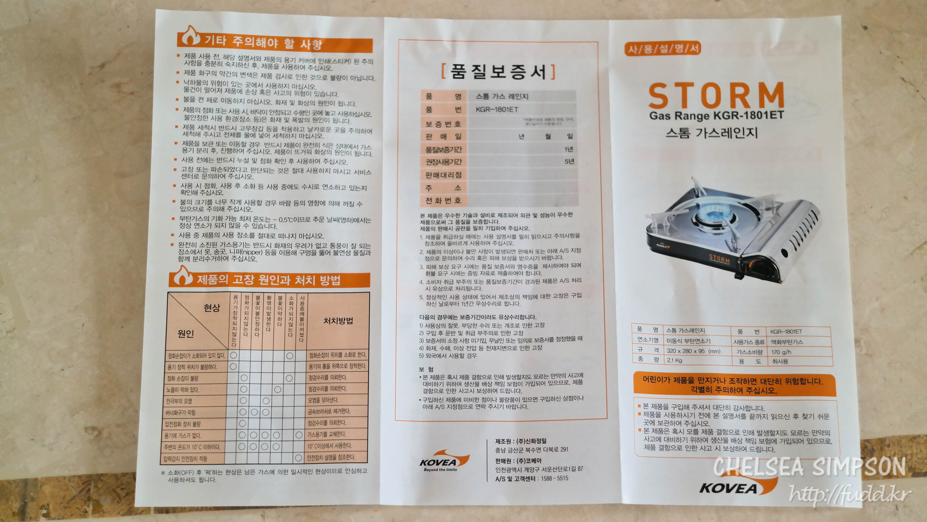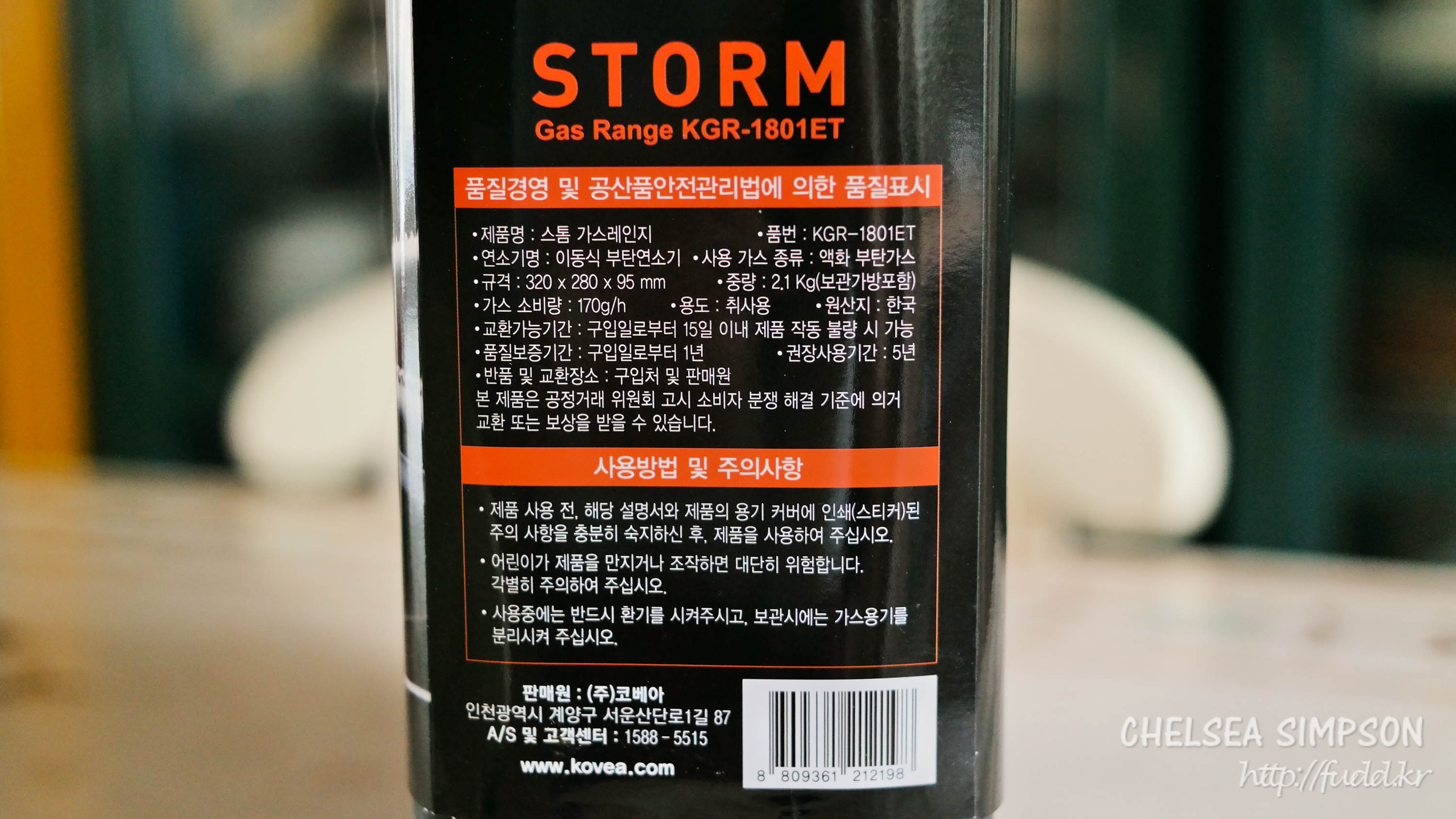 코베아 스톰 가스레인지(KOVEA Gas Range KGR-1801ET, 인터넷 쇼핑몰에서 29,030원에 구매)