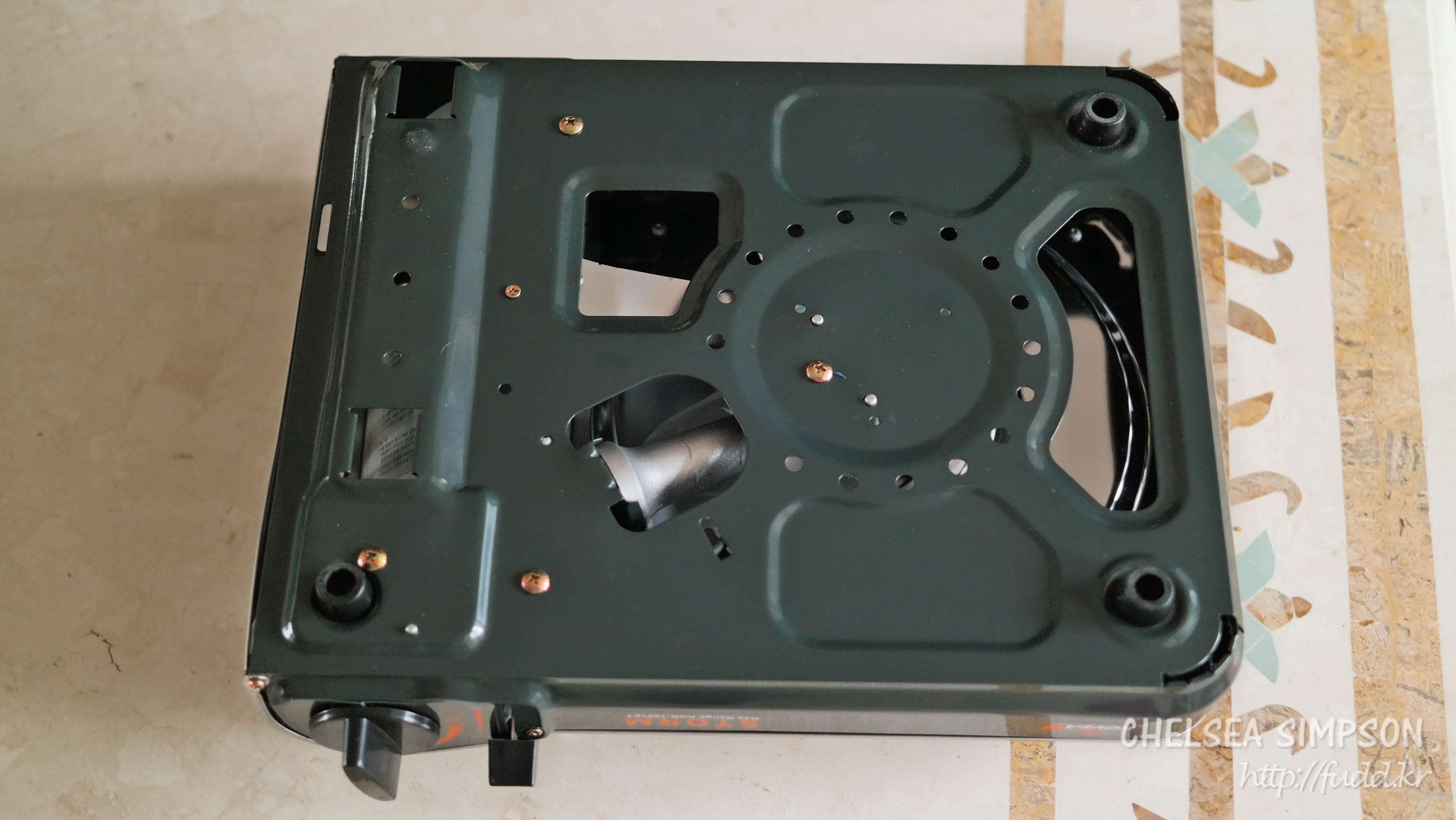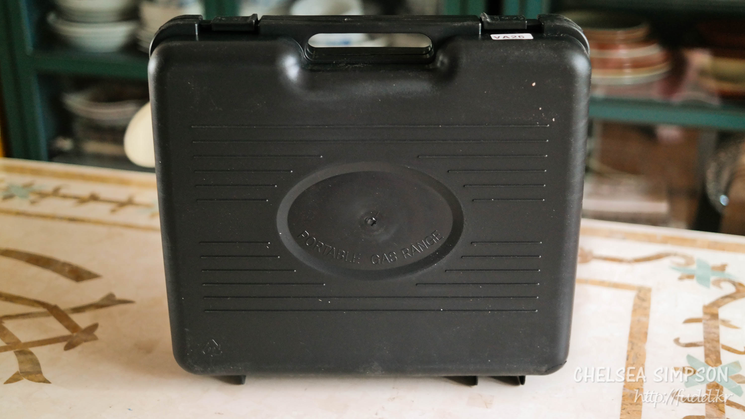 공구함처럼 생긴 플라스틱 가방 안에 가스레인지가 들어있다.