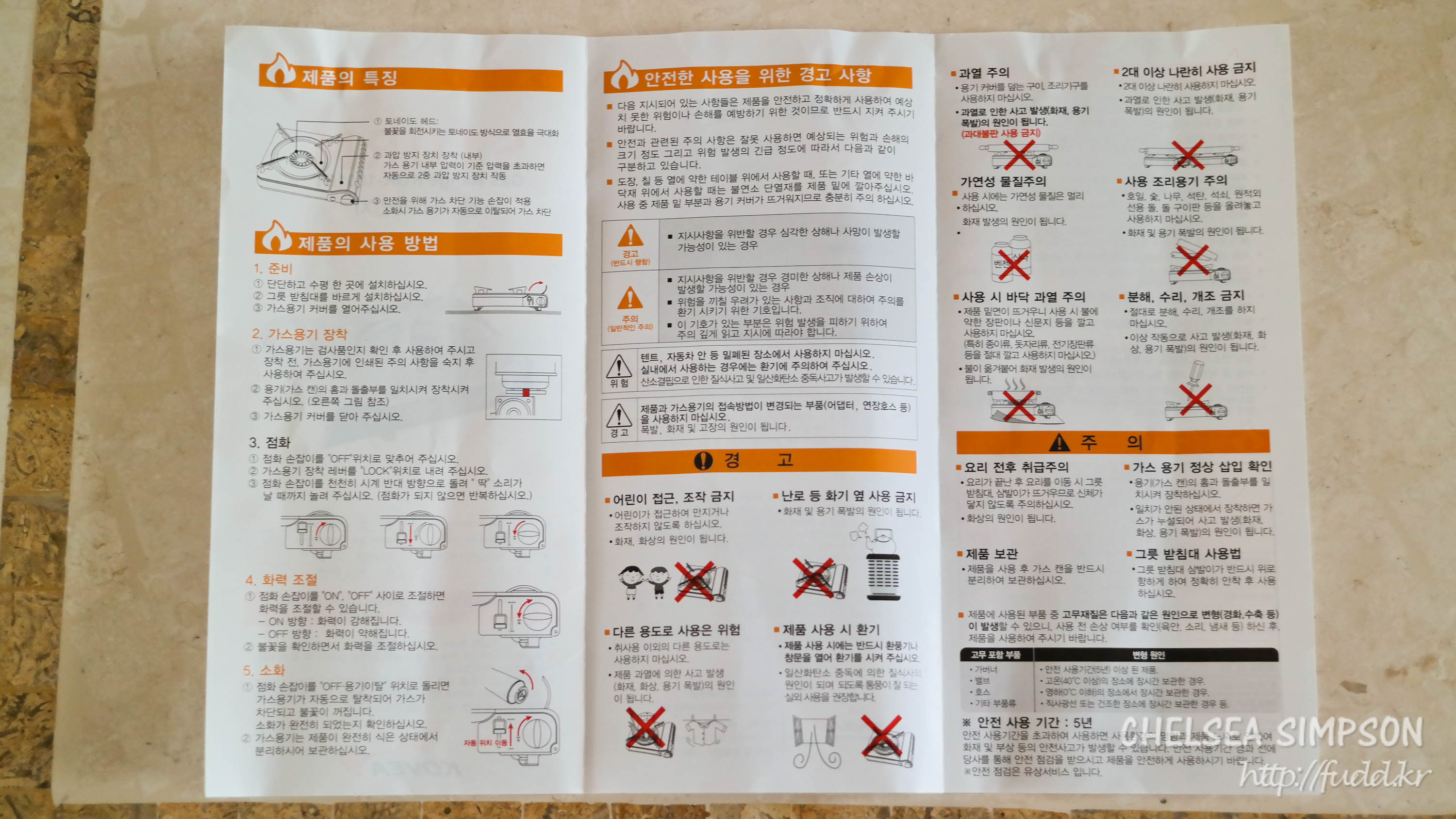 ※사용중 반드시 환기를 하고, 보관시에는 가스 용기를 분리시킬 것을 안내하고 있다.