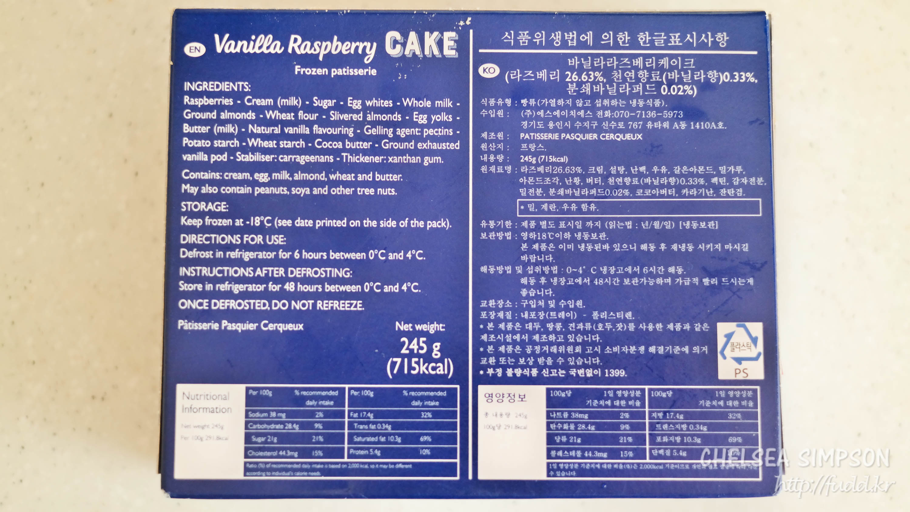 파스키에 바닐라 라즈베리 케이크(4pcs, 245g, 마트 가격 7,680원)