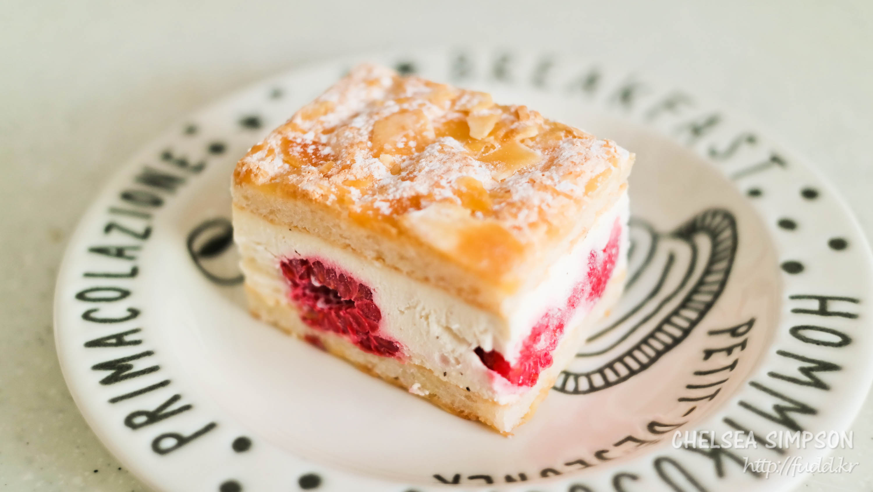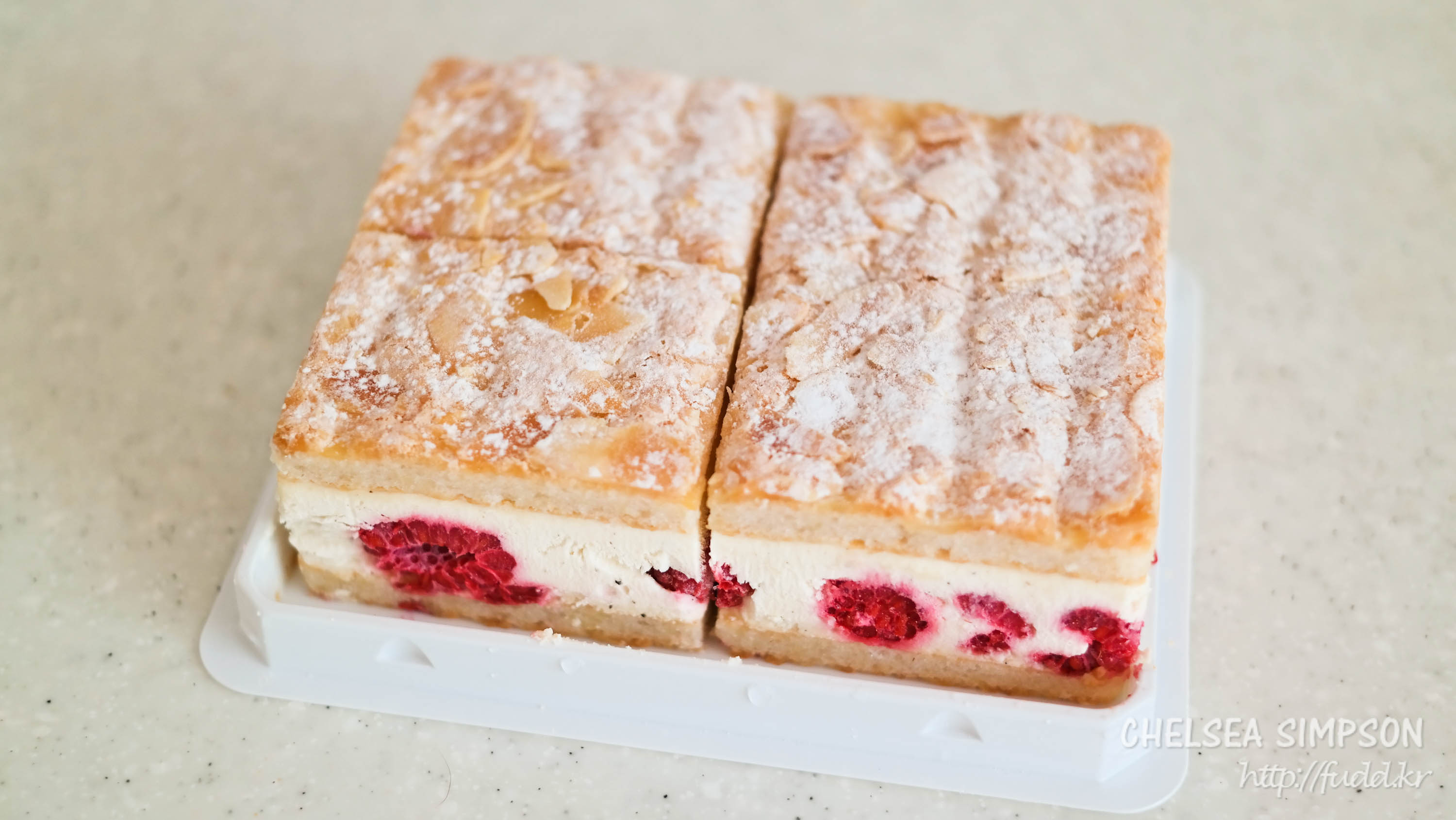 비스퀴는 평범하지만 고소하고, 안에 들어있는 바닐라 크림의 풍미가 은은하면서 라즈베리의 새콤한 향이 진했다.