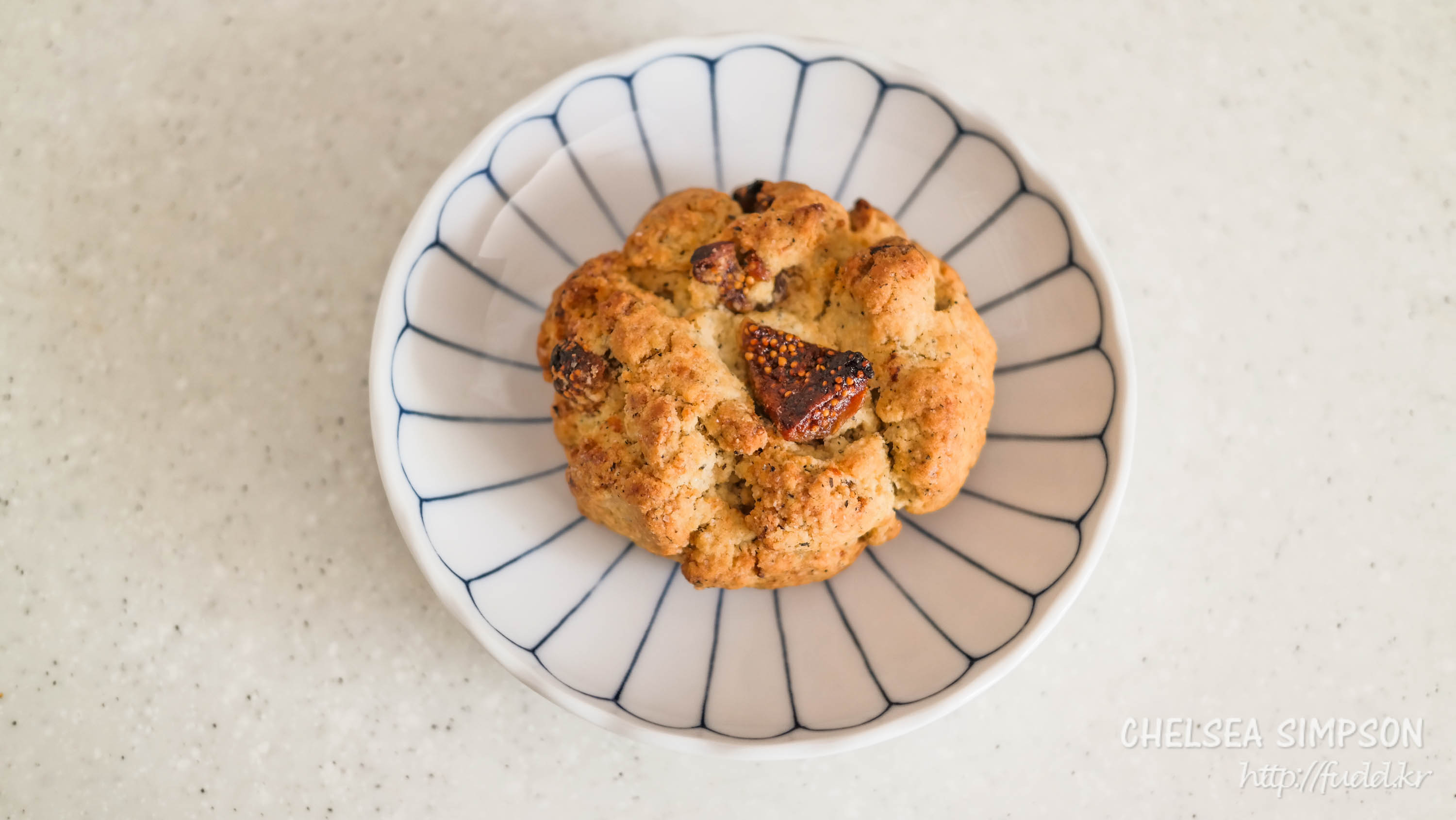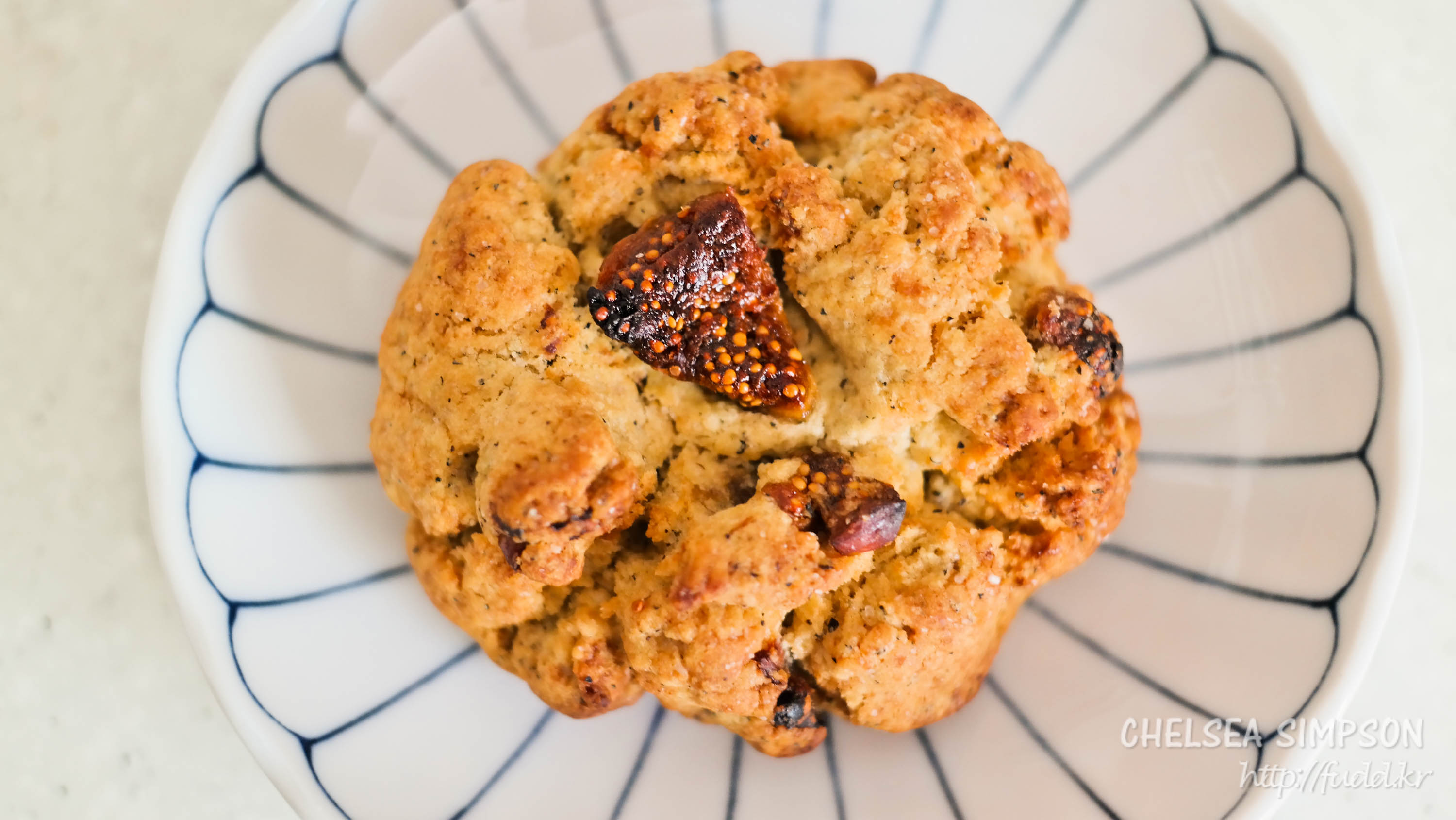 얼그레이가 들어간 쿠키 반죽에 말린 무화과가 들어있다.