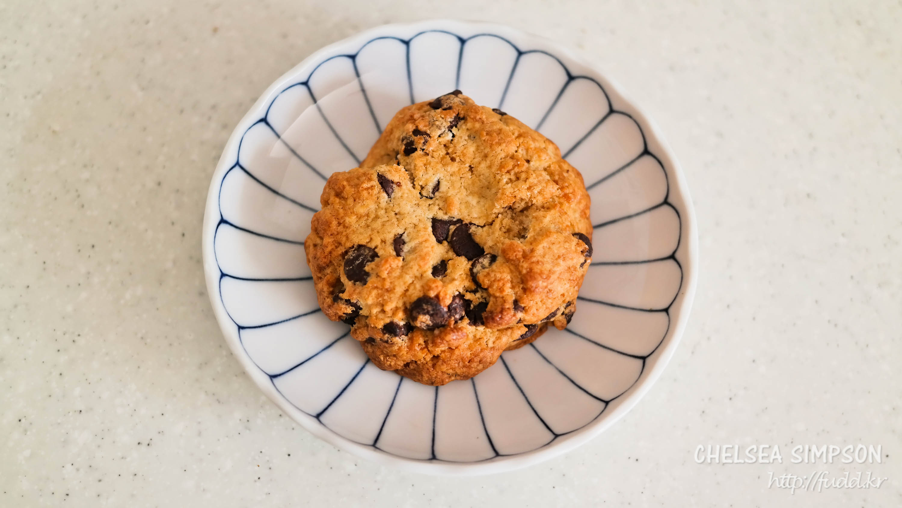 묵직한 쿠키 속에 초콜릿이 넉넉하게 박혀있다.