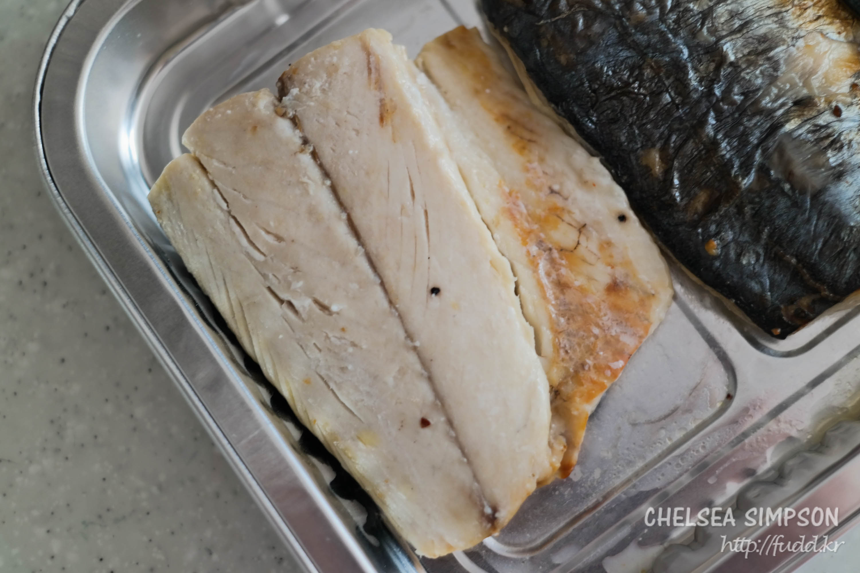 전자레인지에 그대로 데워먹는 우리집애 국내산 삼치구이(200g, 당시 마트 가격 7,700원).