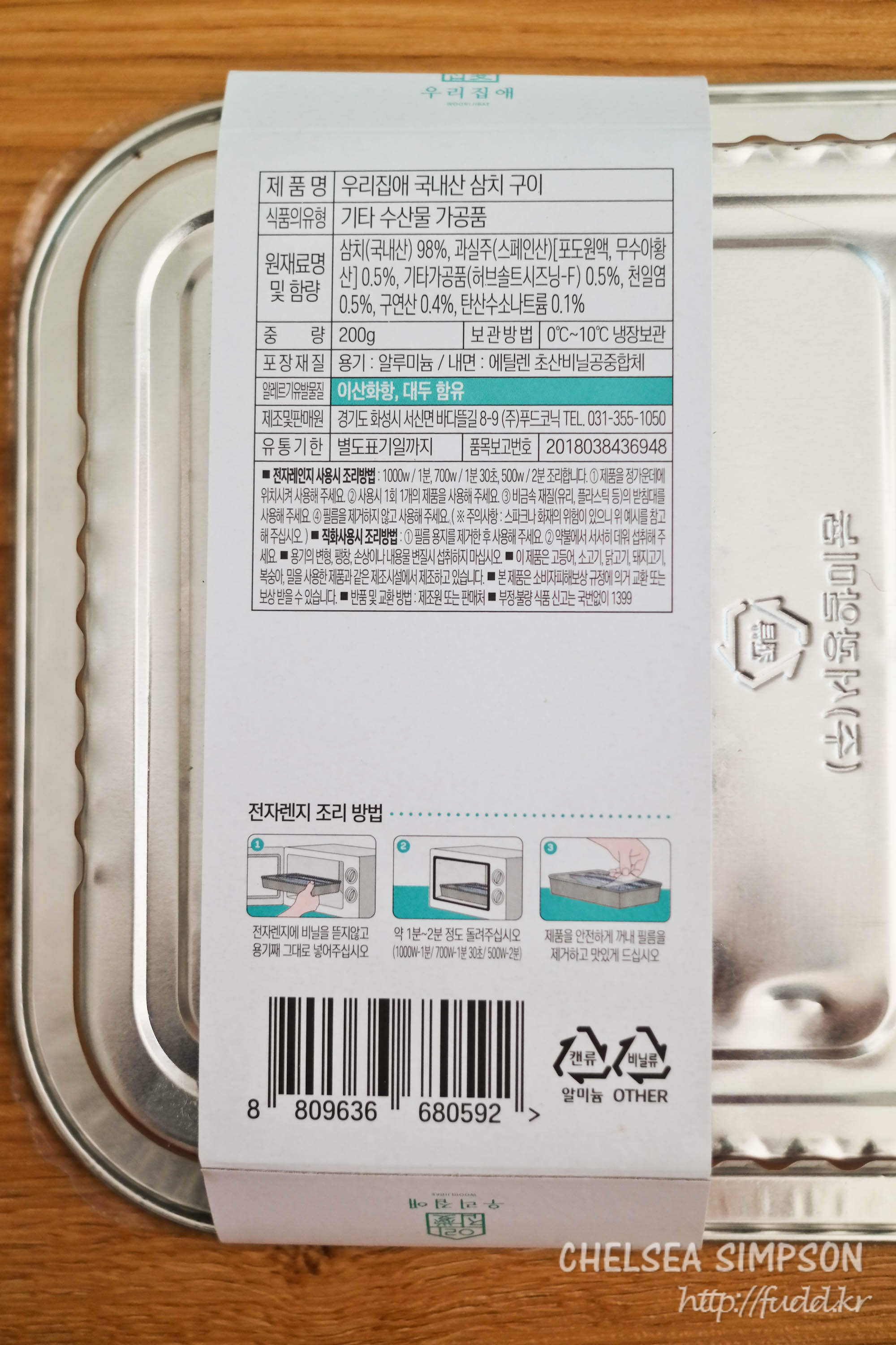 전자레인지에 그대로 데워먹는 우리집애 꽁치구이(180g, 당시 마트 가격 5,800원).