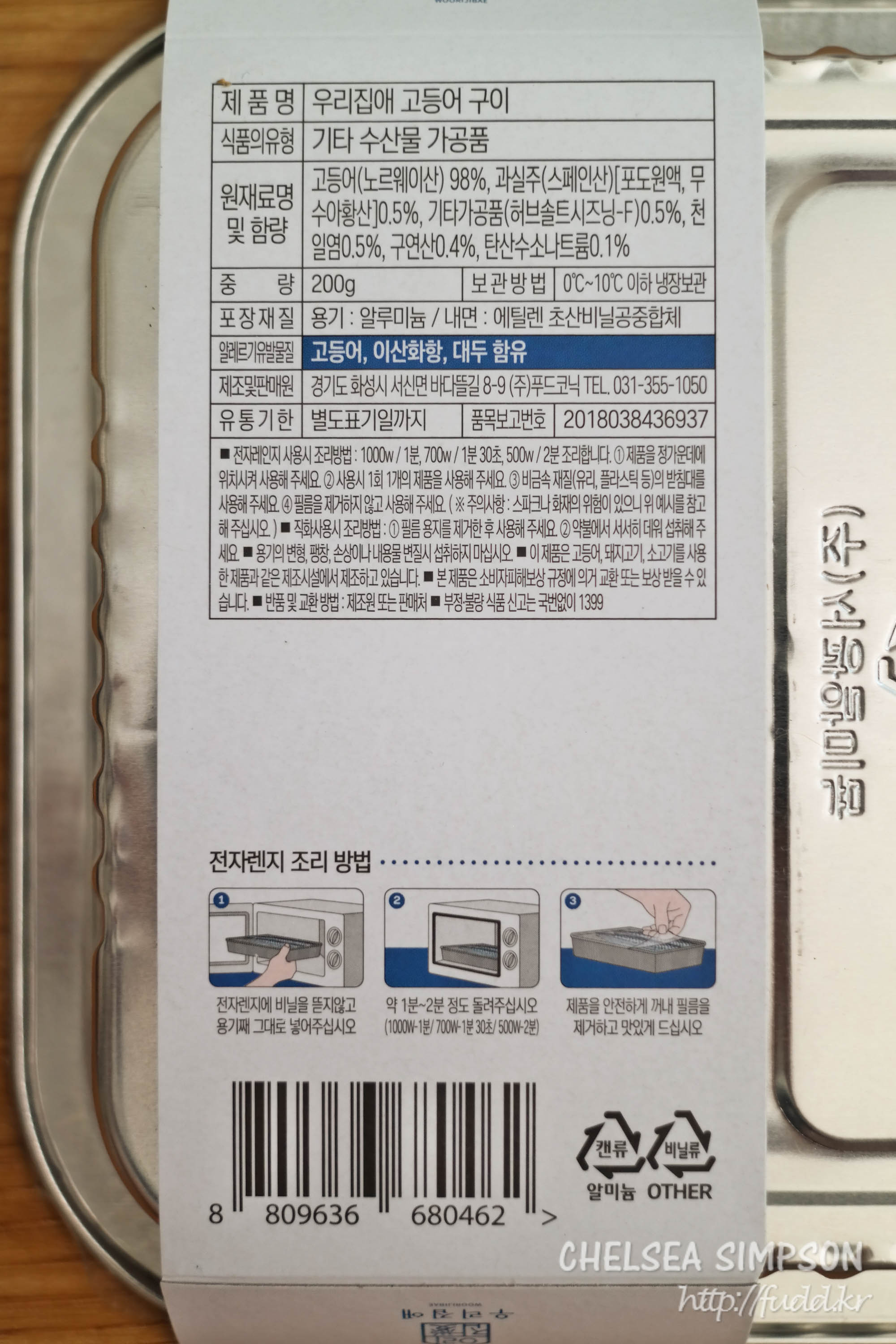 전자레인지에 그대로 데워먹는 우리집애 고등어구이(200g, 당시 마트 가격 6,700원)