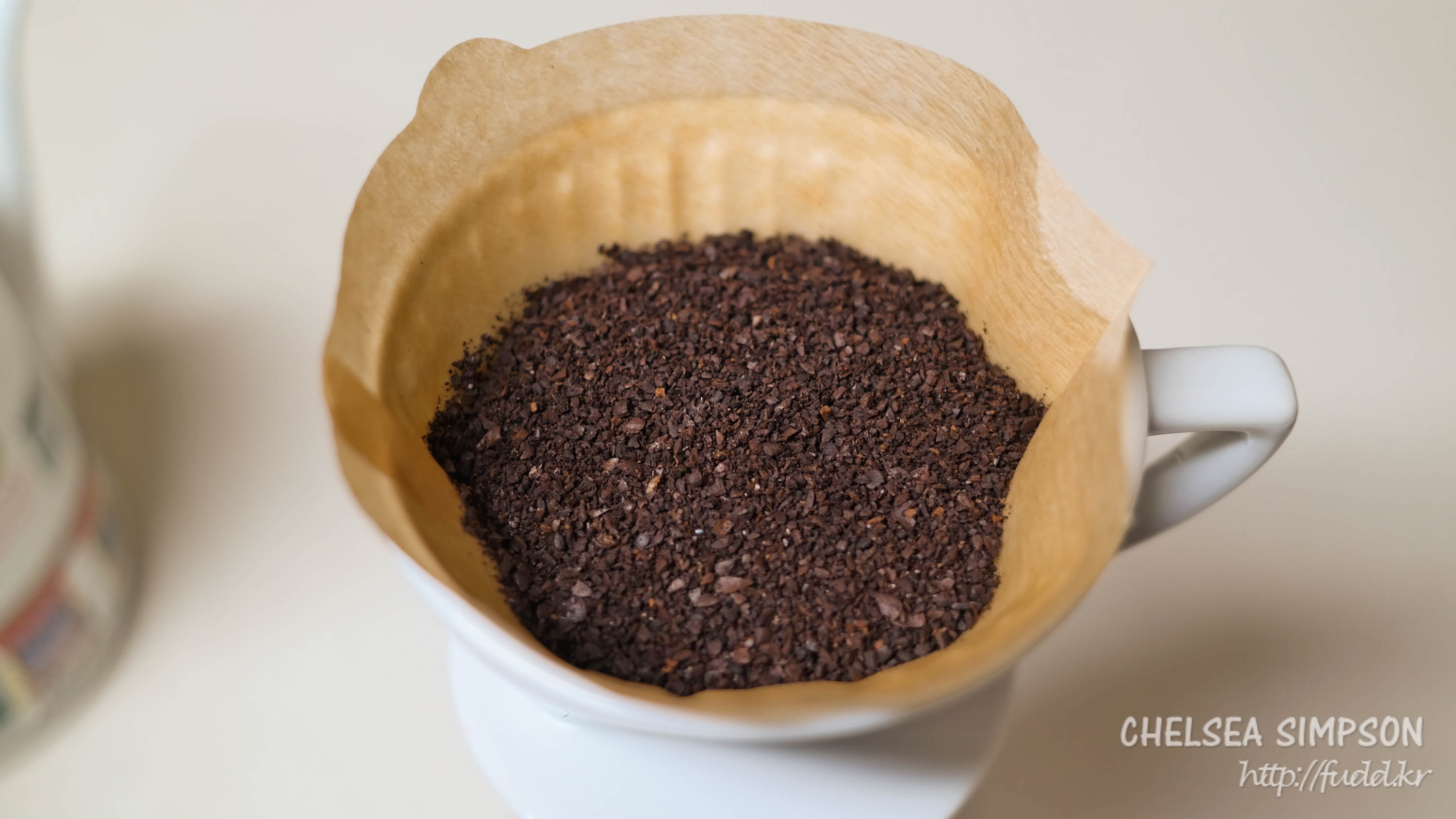 핸드드립용으로 분쇄해서 가져왔기 때문에 자잘한 모래알 같은 커피 알갱이가 가득하다.