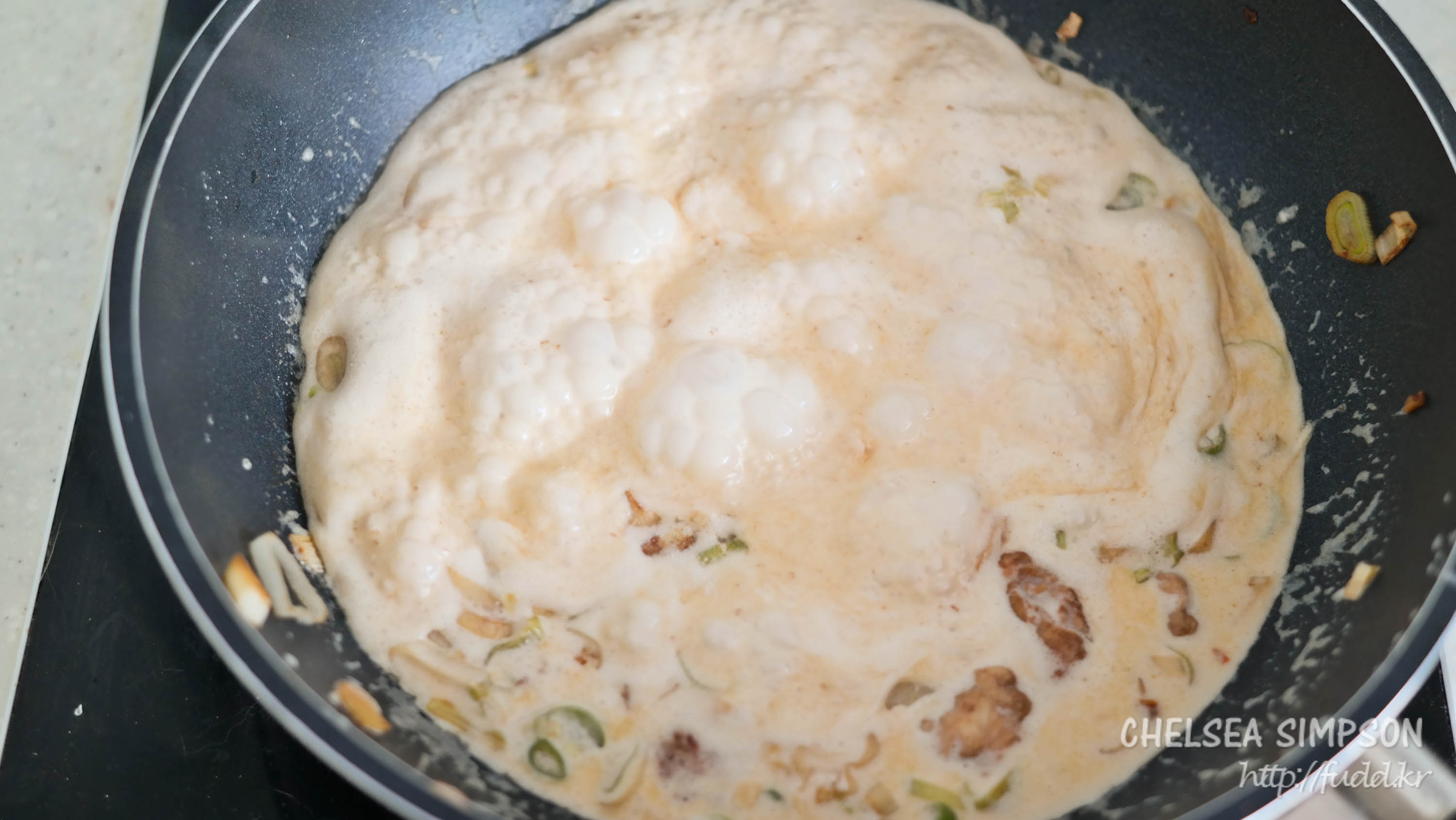 소스가 걸쭉해지도록 2-3분 정도 끓이며 저어준다.