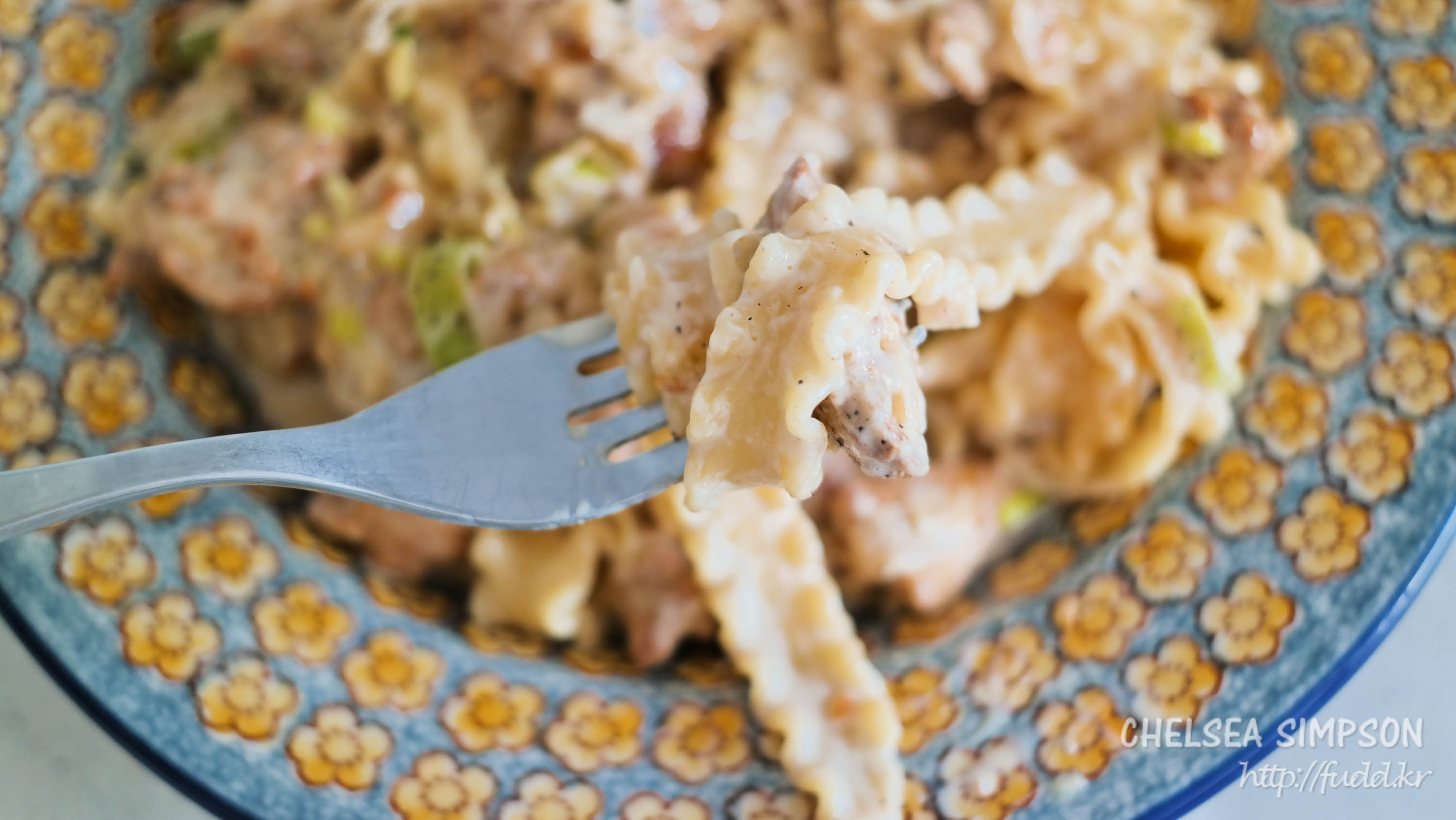 구불구불한 면과 부드러운 닭고기, 고소하고 짭조름한 크림소스가 잘 어우러져서 맛있었다! :D