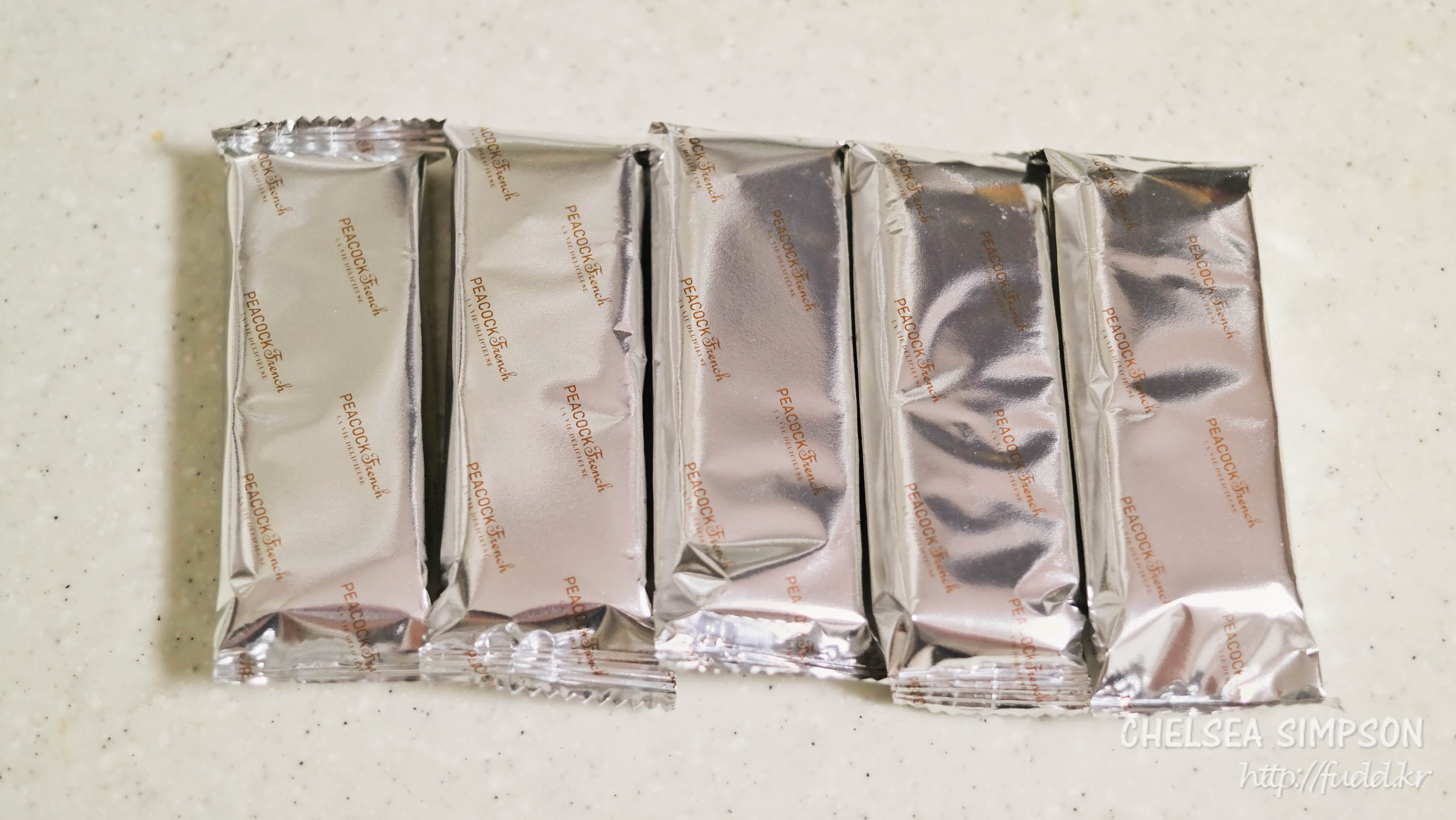 상자를 뜯으면 이렇게 낱개 포장된 과자가 나온다.