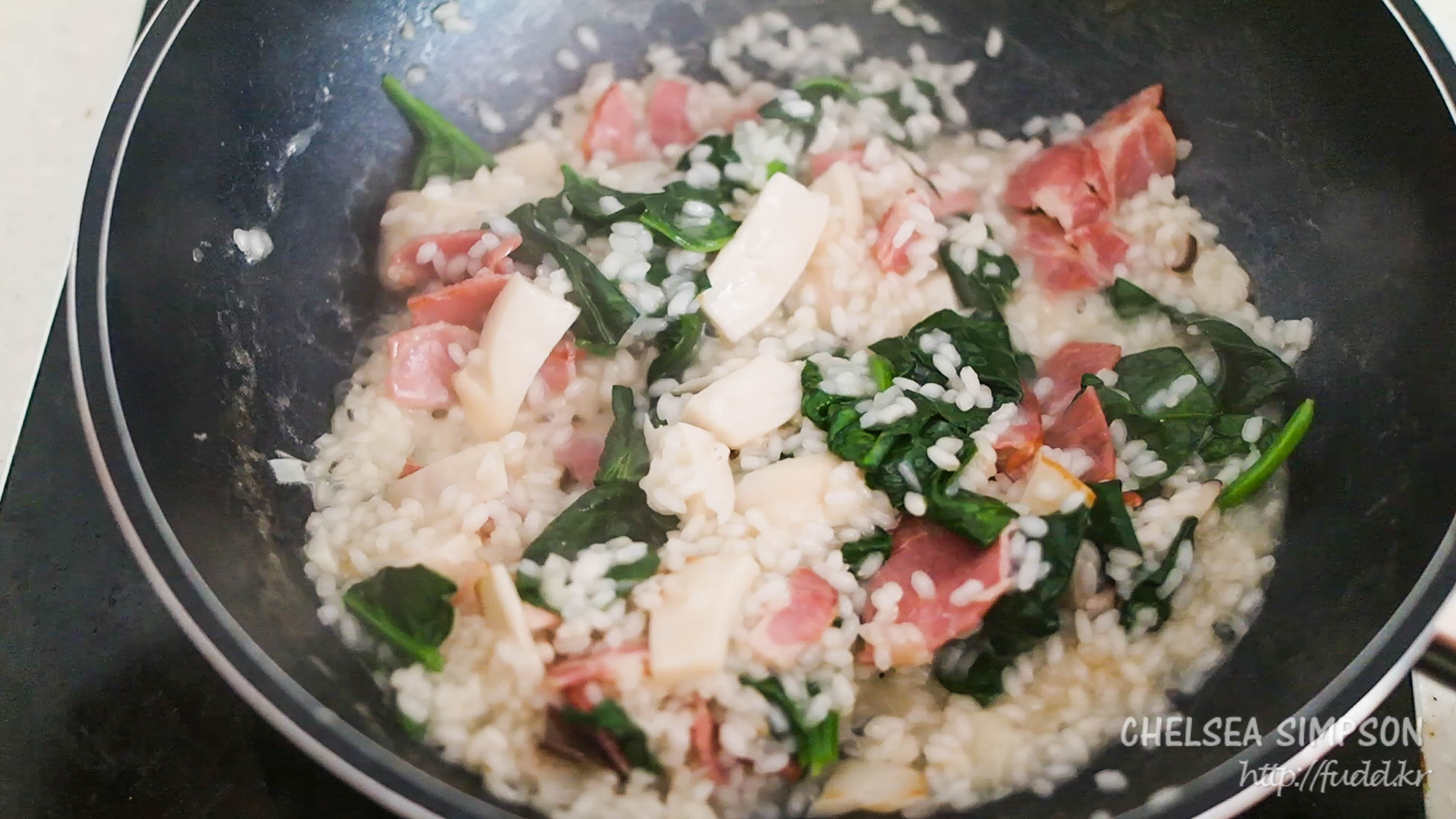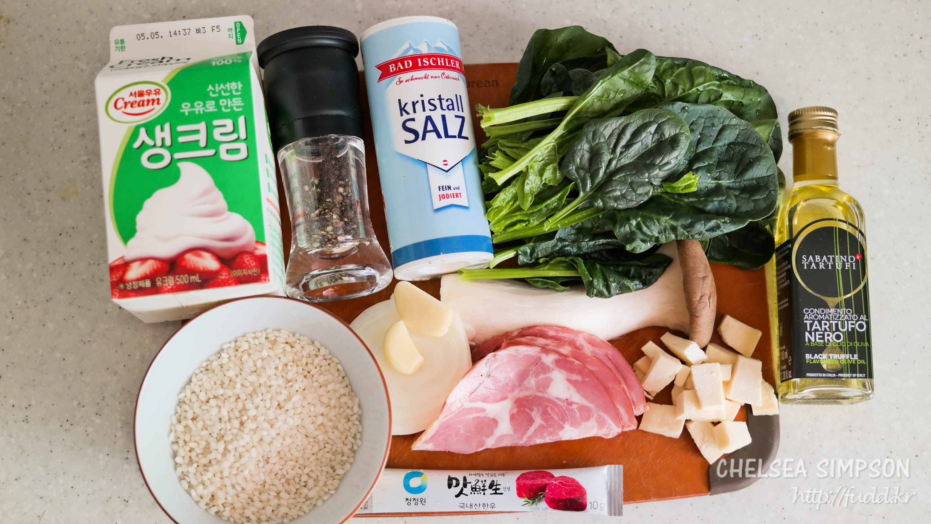 [리소토]꾸덕하고 크리미한 트러플 풍미의 시금치 버섯 베이컨 리조또 만드는 법, 리조또 레시피 추천 How to make super creamy truffle flavored risotto with spinach, mushroom and bacon