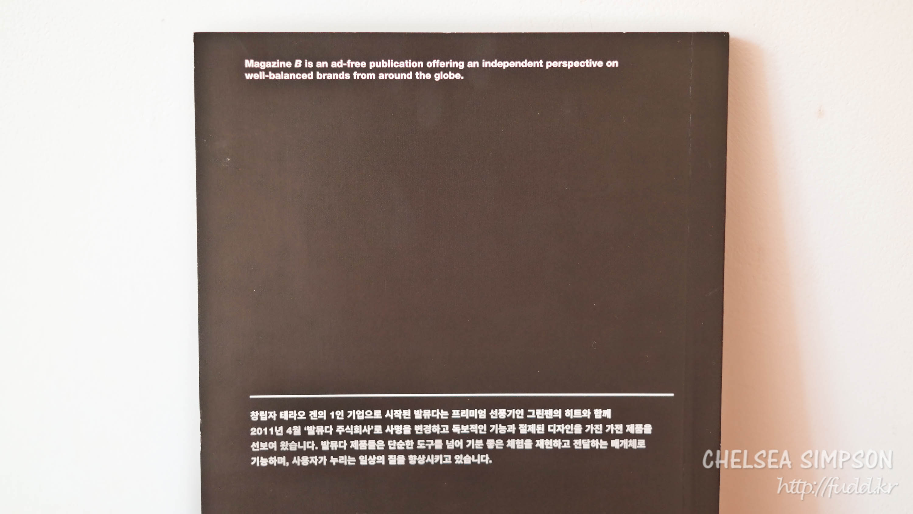 매거진<B> 시리즈에 대한 감상을 10권 이상 기록하면서 소소한 불평을 덧붙였는데 이번 발뮤다 편을 보면서 앞으로는 이 잡지를 더 사지 않아도 될 것 같다―물론 가지고 있는 잡지 기록은 이어서 올릴 예정―는 생각이 들었다. 내가 생각하는 매거진<B>의 장점이 많이 바랬다는 인상을 받았기 때문이다(이하 '<B>'라고 표기).