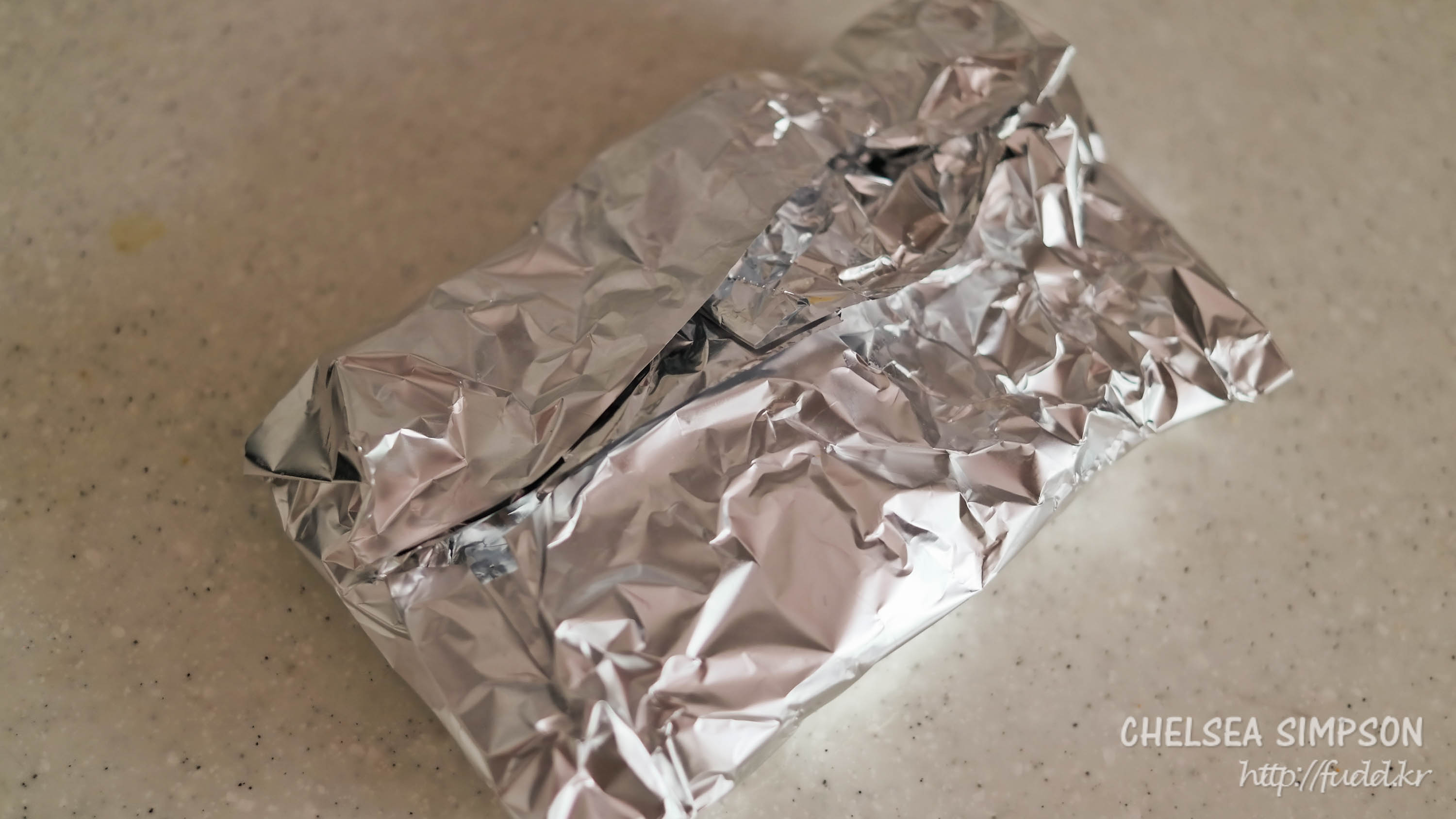 닭고기의 열기가 빠져나가지 않도록 호일을 잘 접어 감싸 3분 정도 레스팅한다.