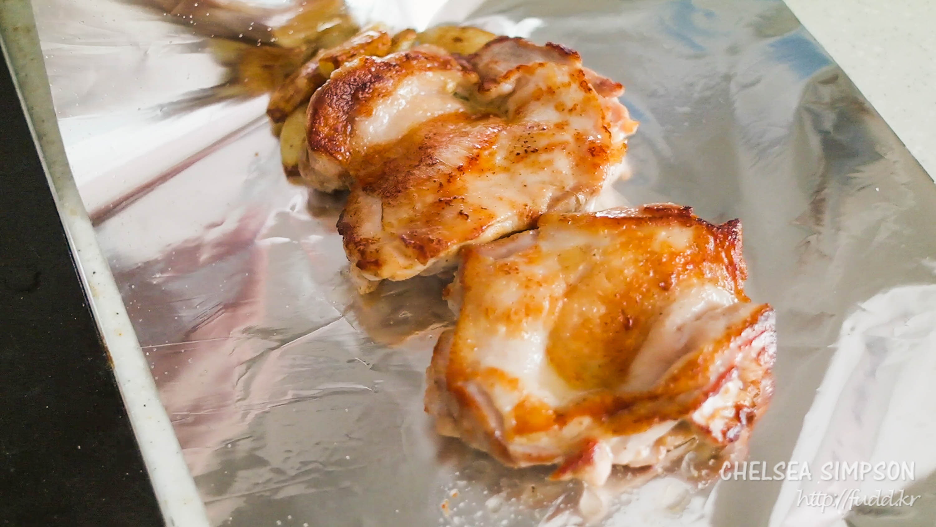 호일은 이따 닭고기 레스팅할 때도 쓸 것이기 때문에 넉넉하게 깔아두는 게 좋다.